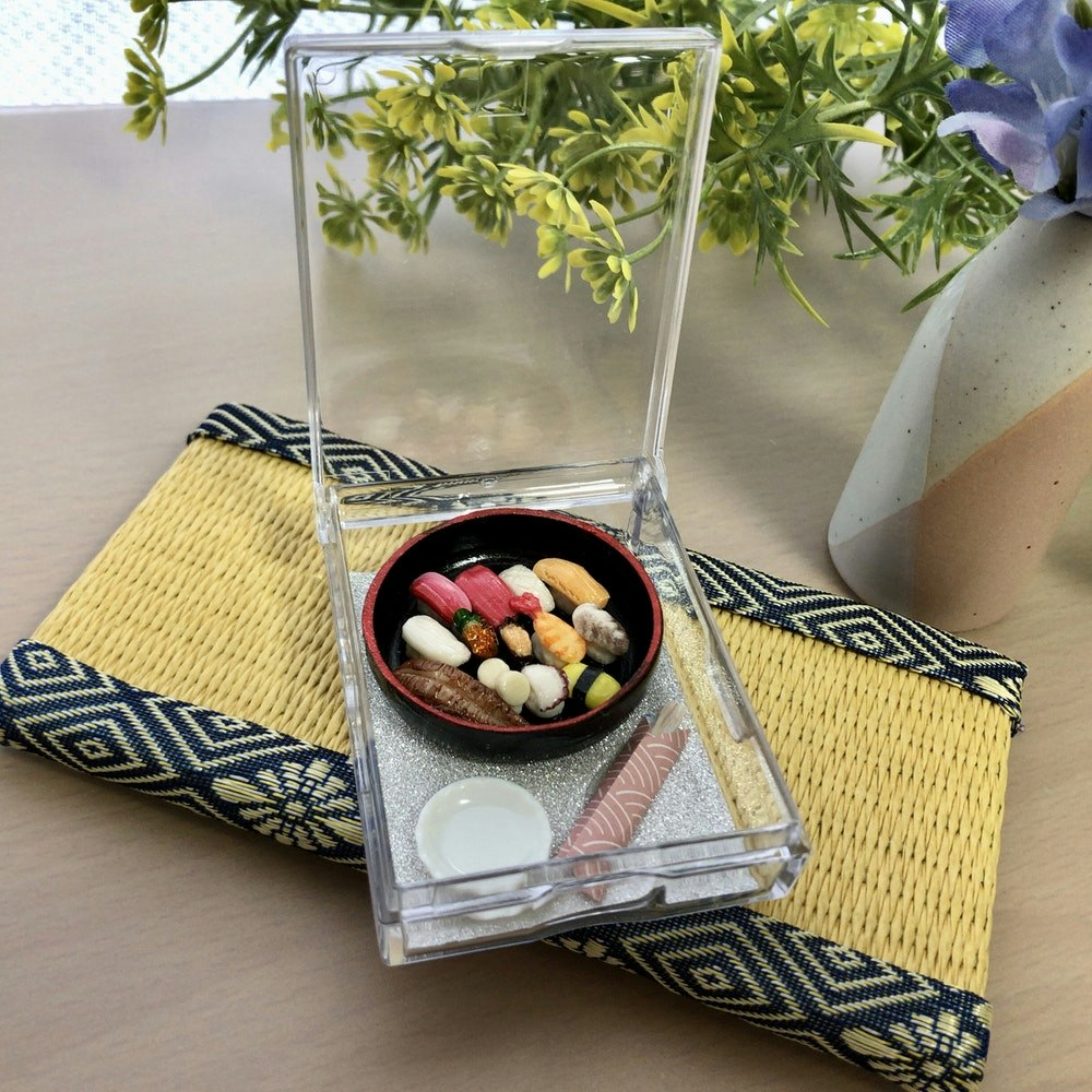 ミニチュア好きさんにはたまらないケース入りの小さなお寿司。
