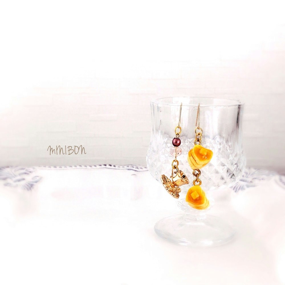 片方はティーカップのパーツを使ってアシンメトリーに。