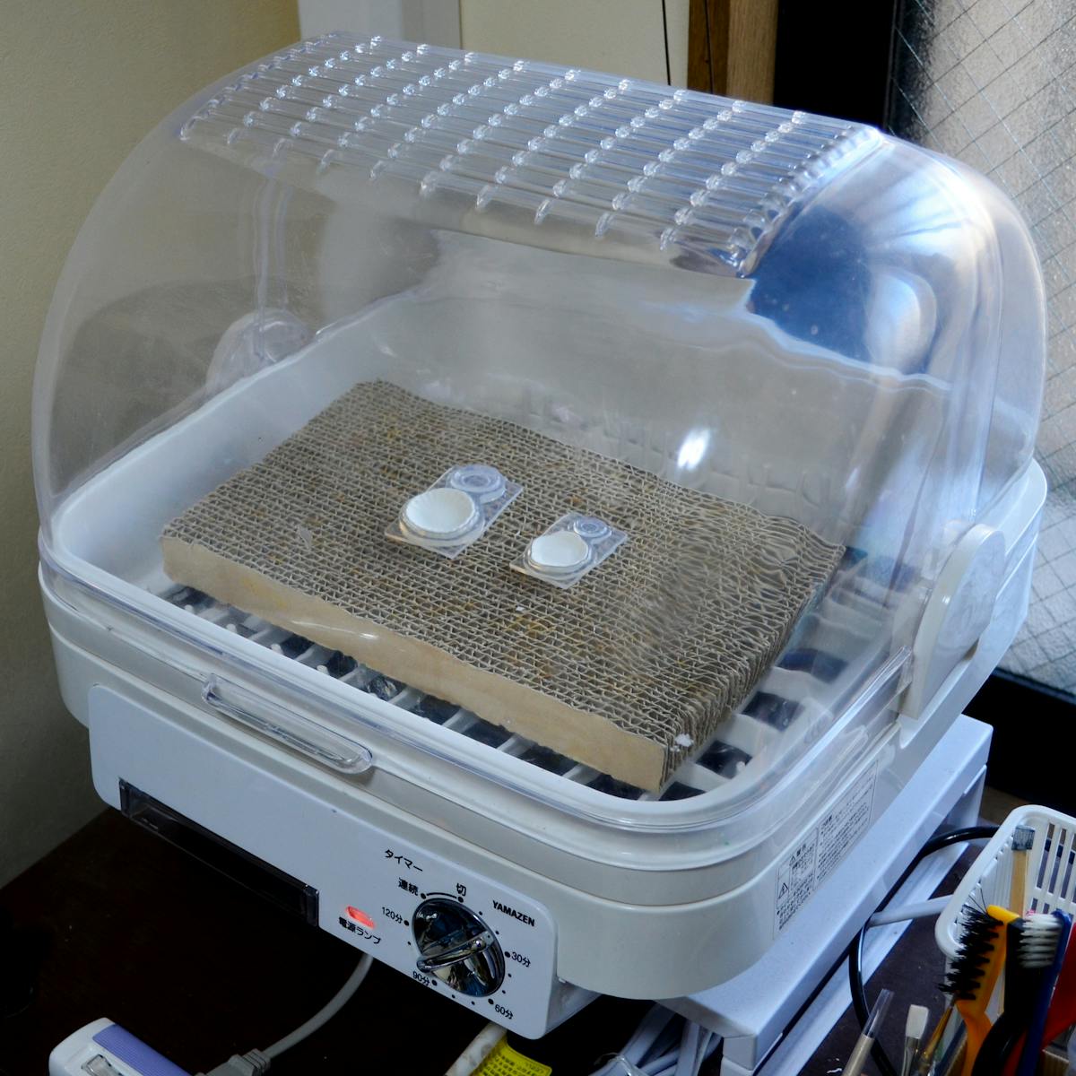 私は乾燥時間の短縮のため、山善の食器乾燥機を使っています。(もともとは、プラモデルのスプレー塗装後の乾燥用に買ったのですが)