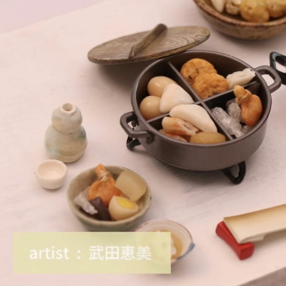 今回はartist・武田恵美さんの作品でした。とても細かく作り込まれていて、おでんのメニューそれぞれの微妙な色味の違いも研究されているんだなぁと思いました。