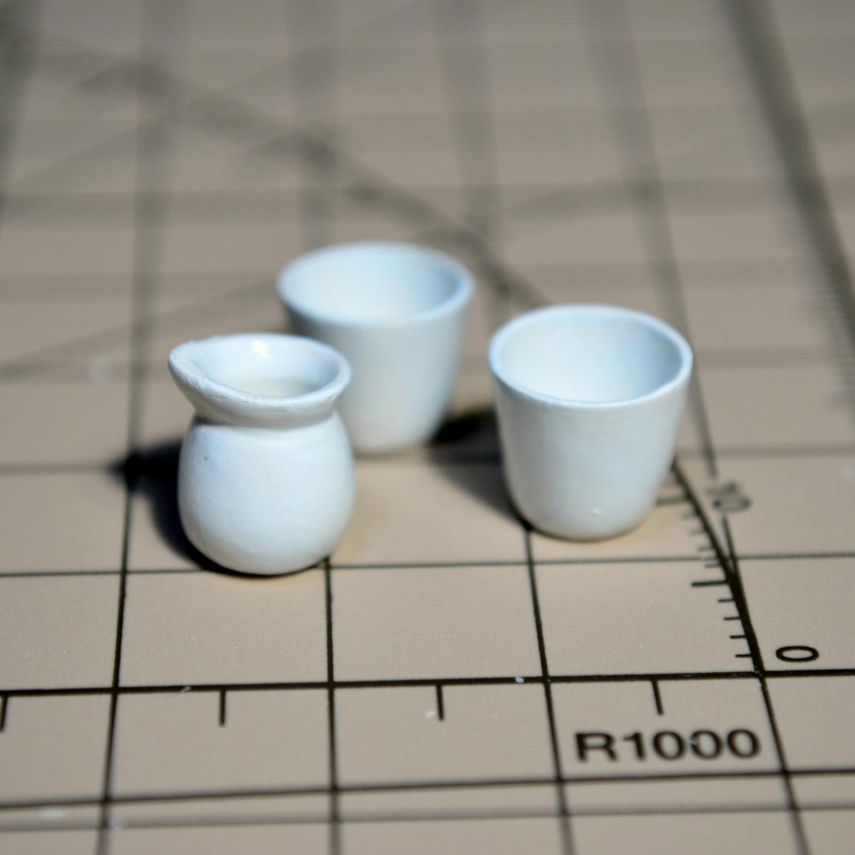 食器類ができたら、全体を白で塗ります。