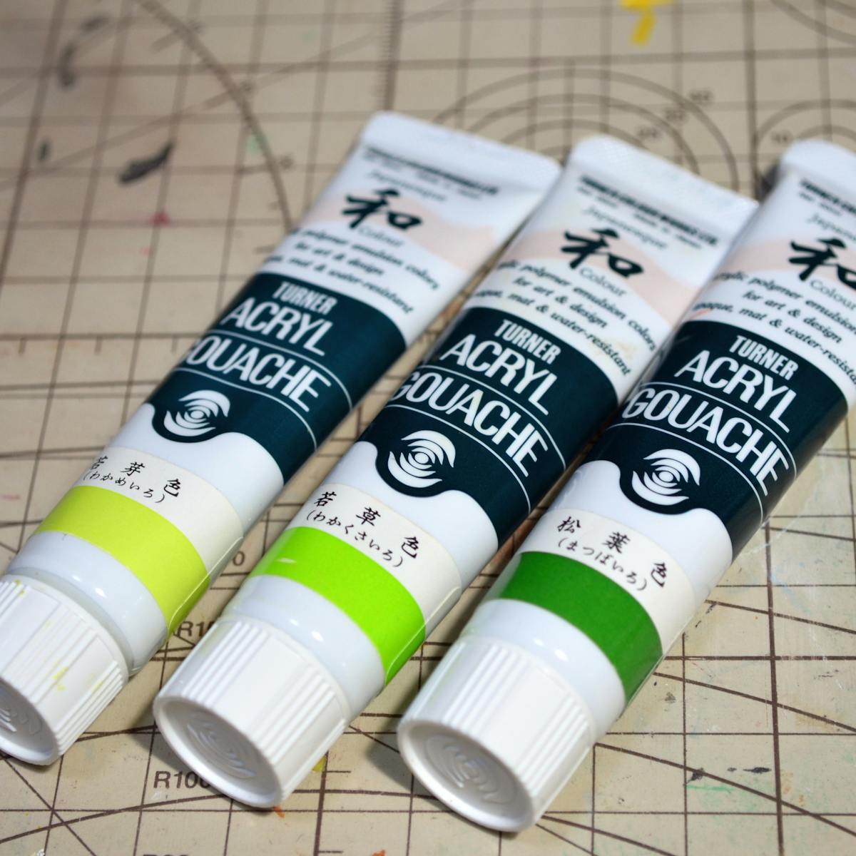 ネギやワサビの彩色は、ターナー社のアクリルガッシュ ジャパネスクカラーを使いました。