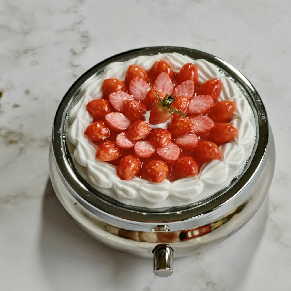 ハーフにカットした苺の裏と表を綺麗に放射状に並べ、真ん中には一粒苺がちょこんと乗った豪華なデザイン。