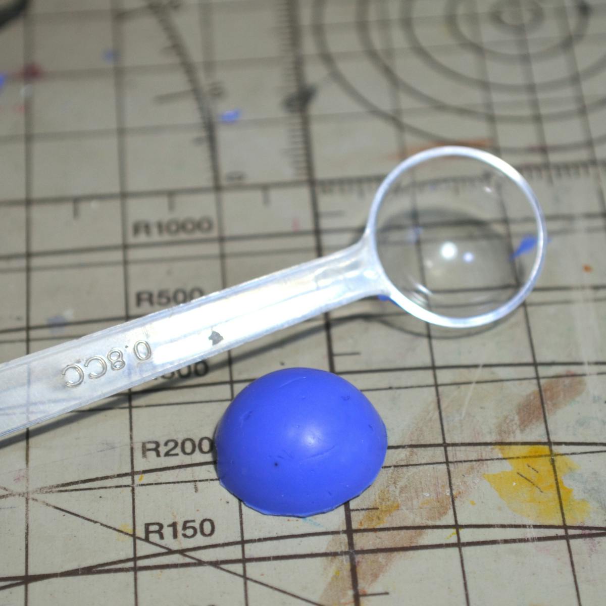 私は、計量スプーンの中でブルーミックスを固化させました。