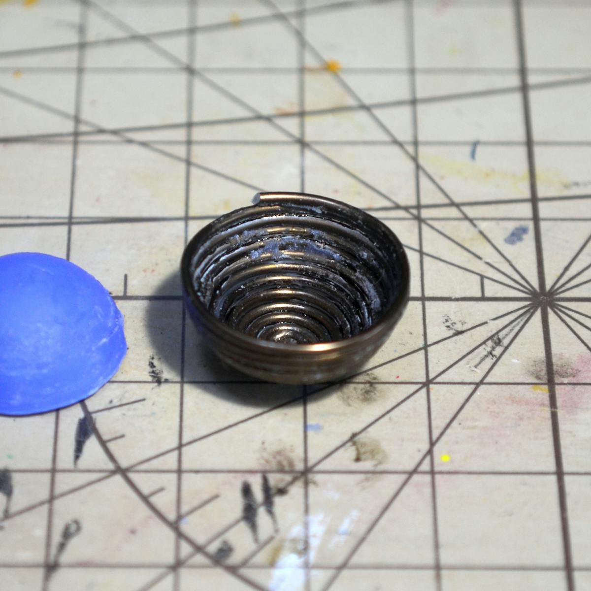 半球形のブルーミックスに沿わせて、アルミ線を巻き付けていきます。