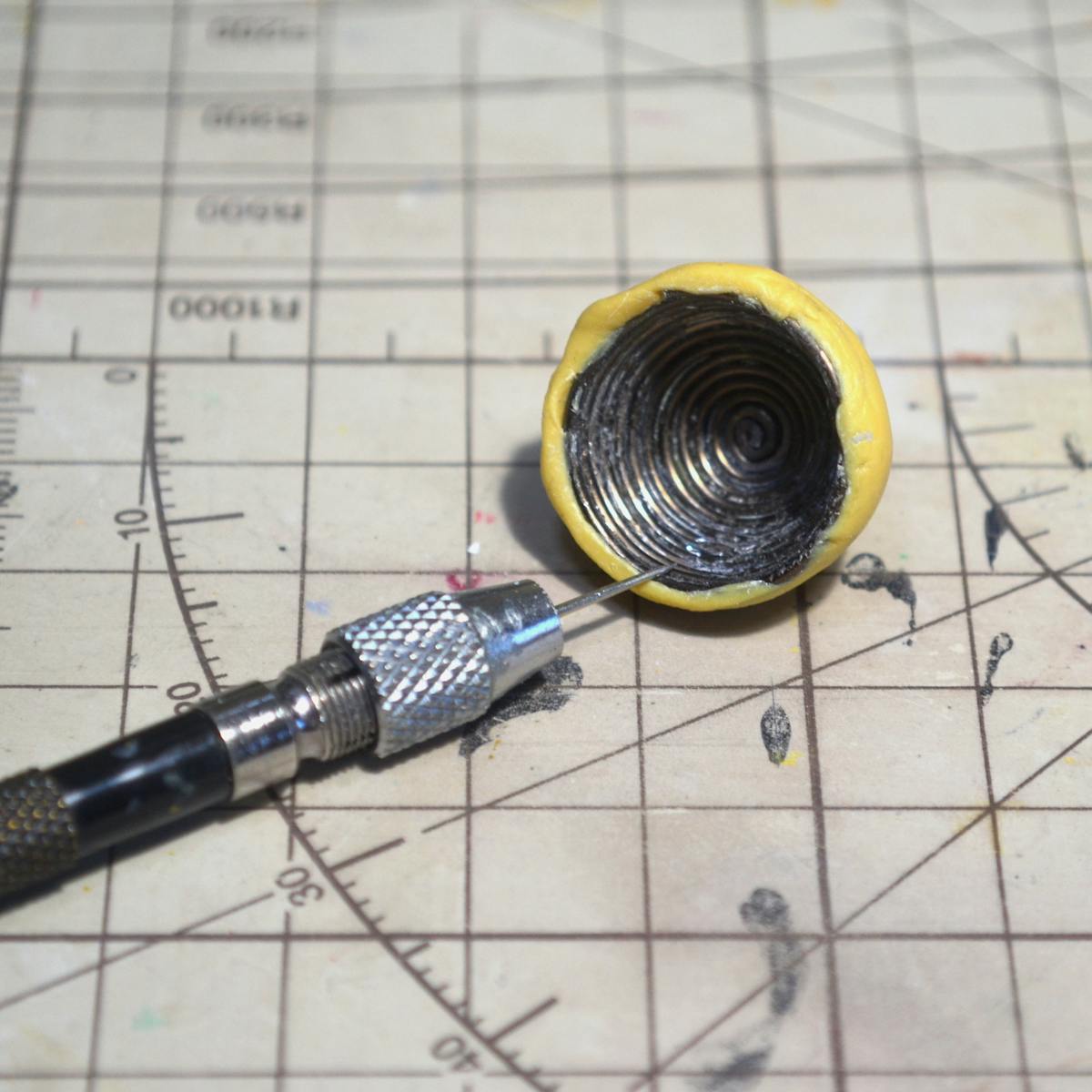 ただ、針のままだと持ちにくいので、写真の様に、タミヤの精密ピンバイス Sに取り付けて使っています。