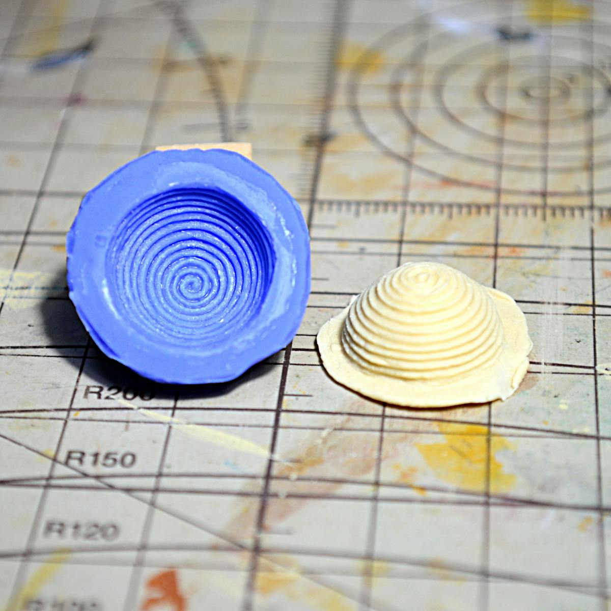 と言っても、発酵カゴで作った「クープをつける前のパンドカンパーニュ」に補正を入れて(結構きっちり補正してますが)、ブルーミックスで型取りしただけですが。