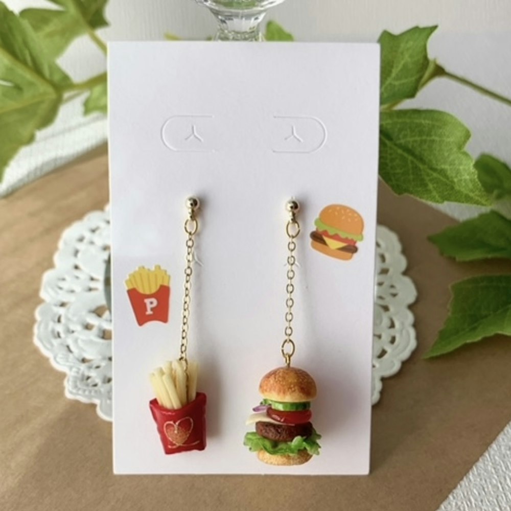 ポップな雰囲気がかわいいハンバーガーとポテトのピアス。