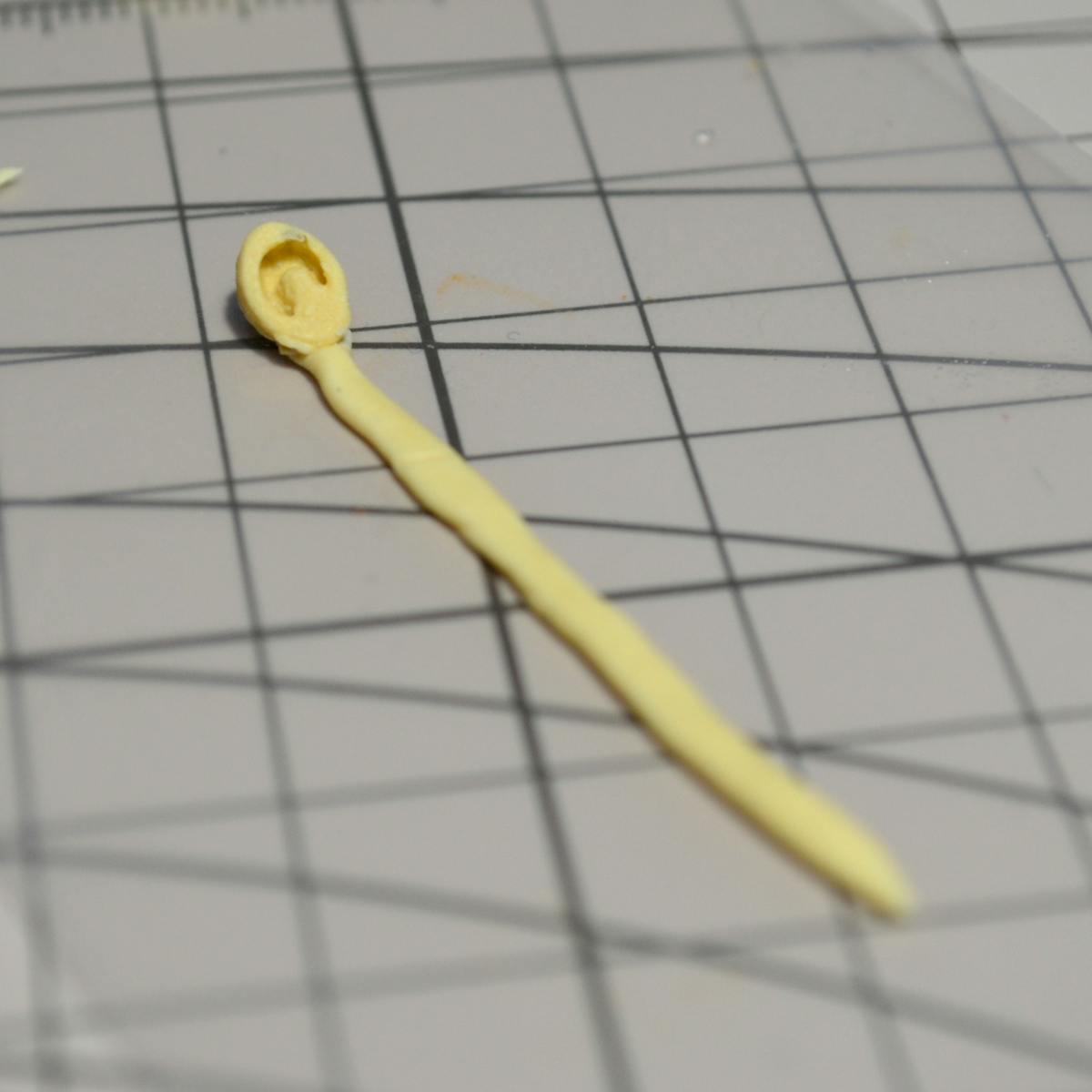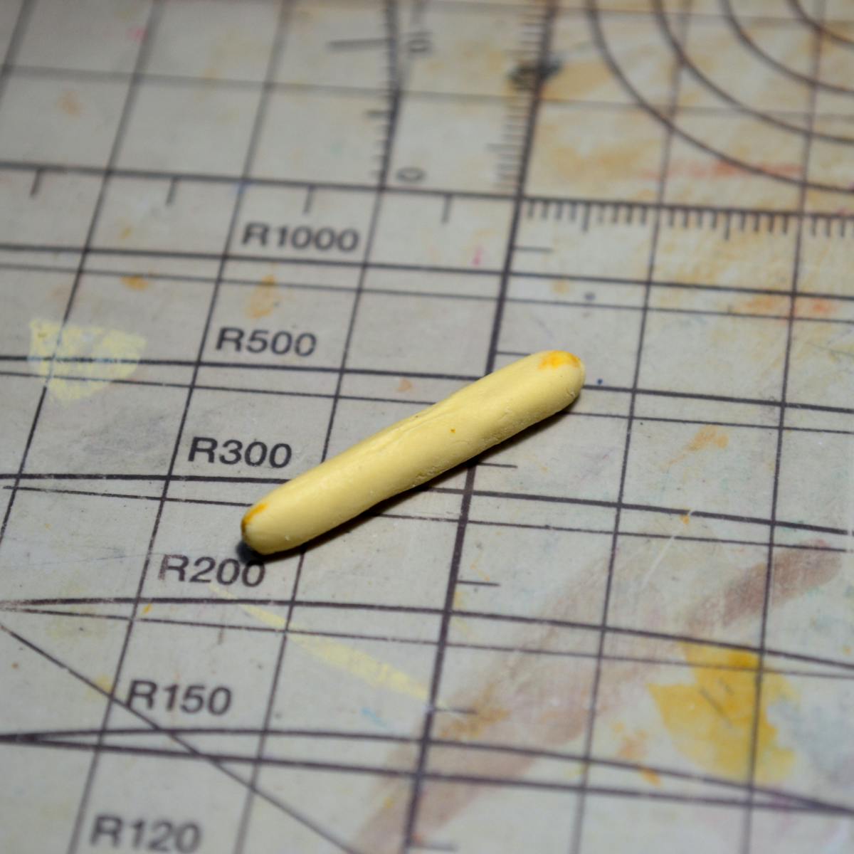 エポキシパテが柔らかい時に側面と上面を同時に作るのは難しいので、柔らかいうちは大まかな形(後で削るので大きめに)を作ります。