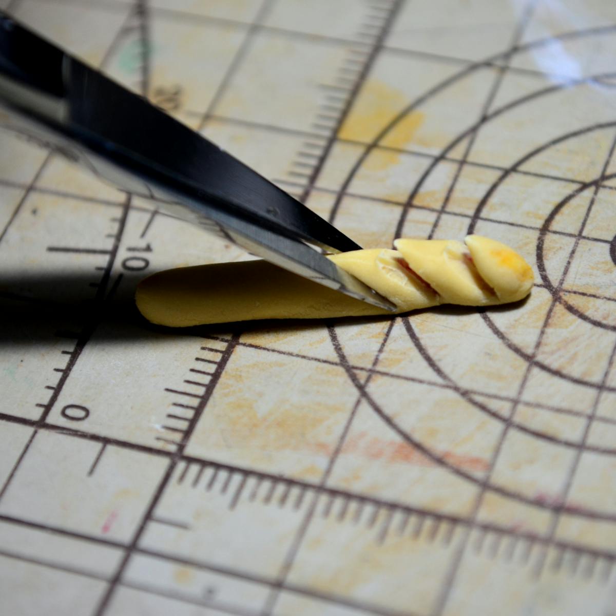 - そしてはさみで斜めにカットします。