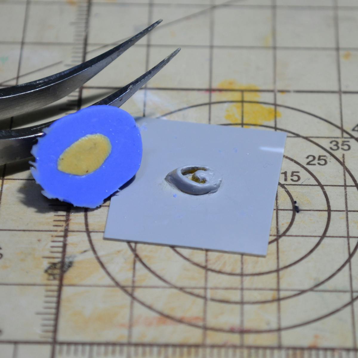 - エポキシパテで作った複製をプラバンに貼り付けます。