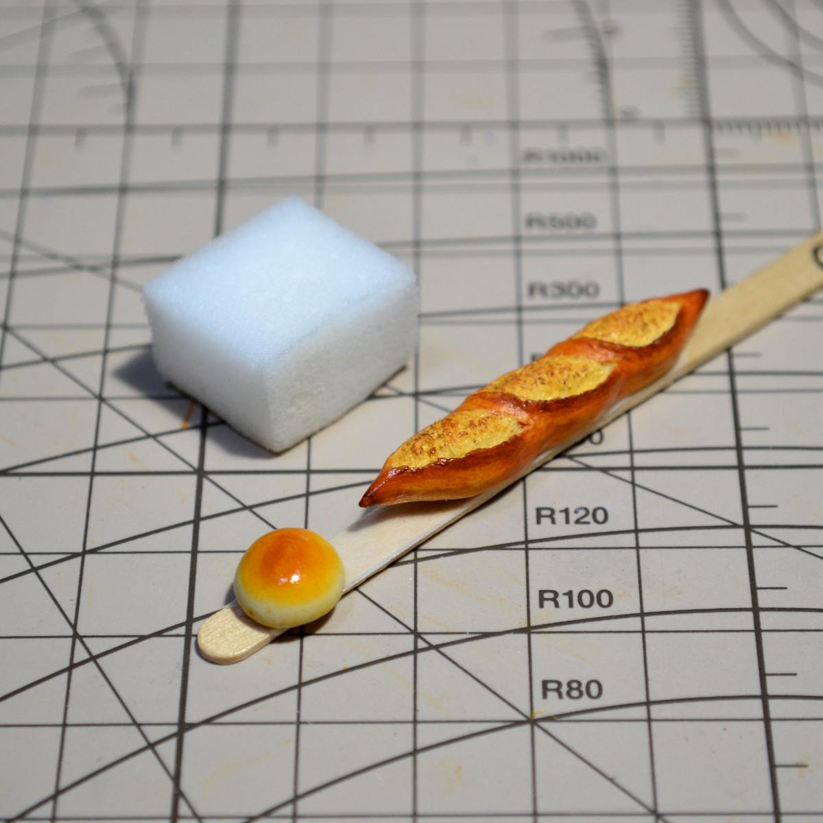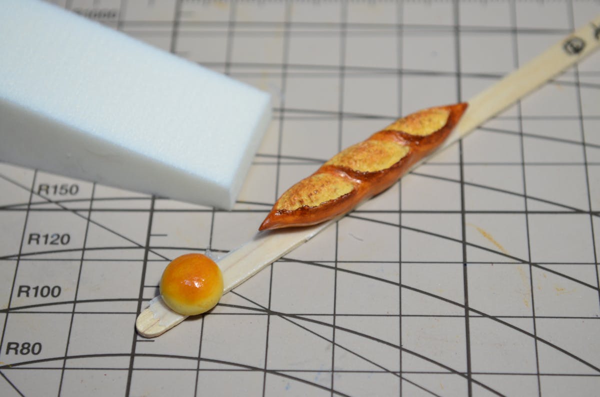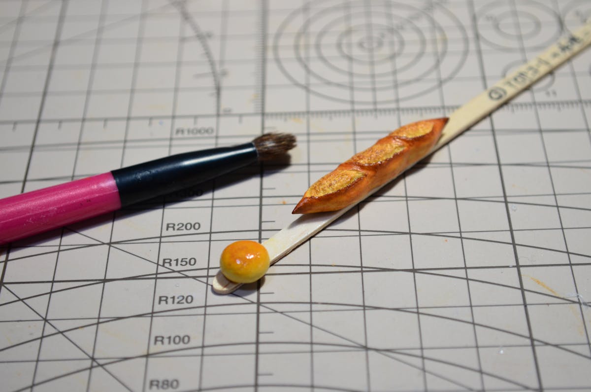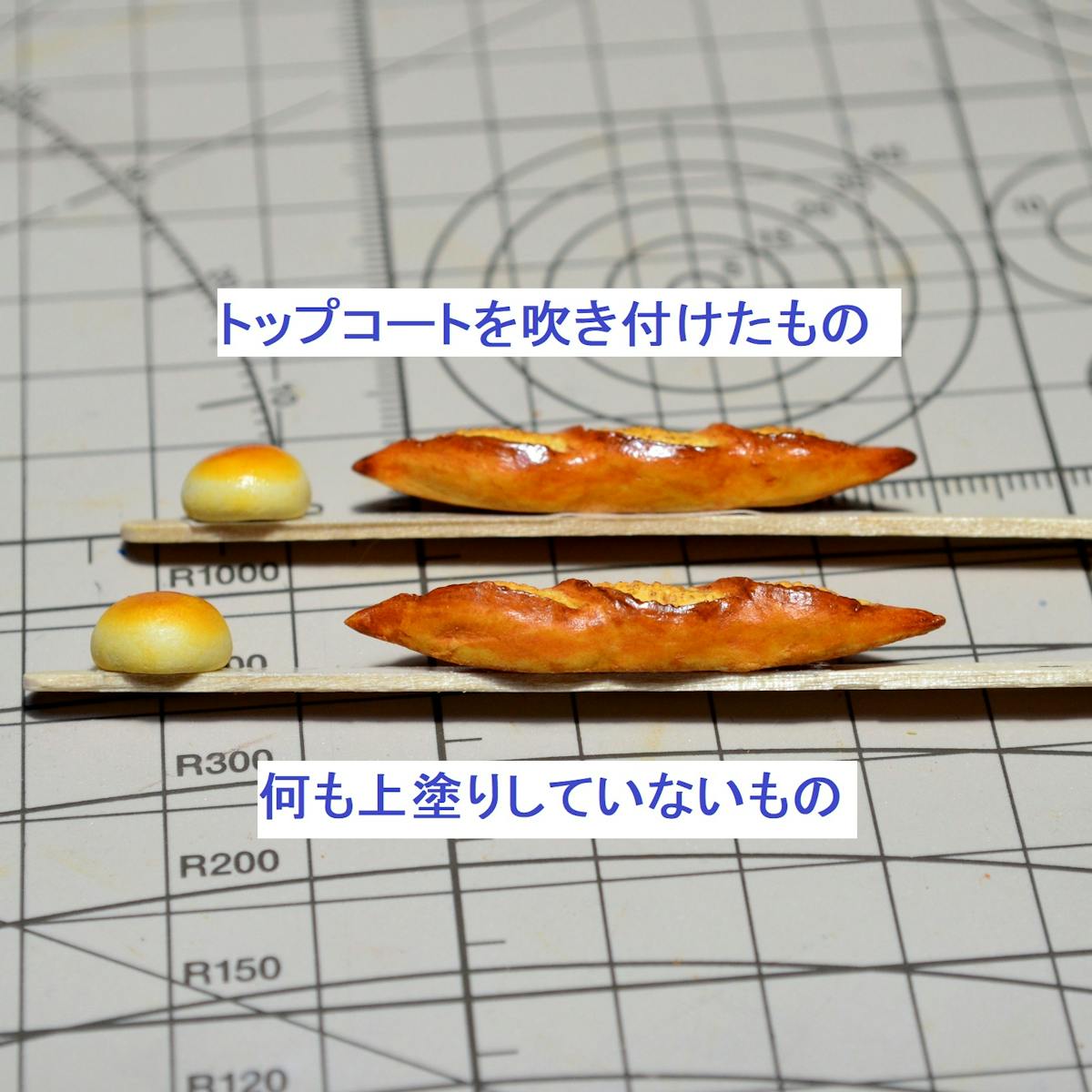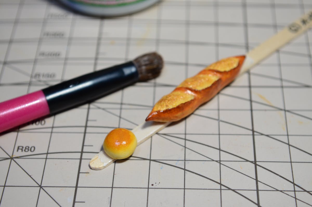 アンパンはツヤ有の水性ウレタンニス、バゲットは艶消しの水性ウレタンニスを塗りました。