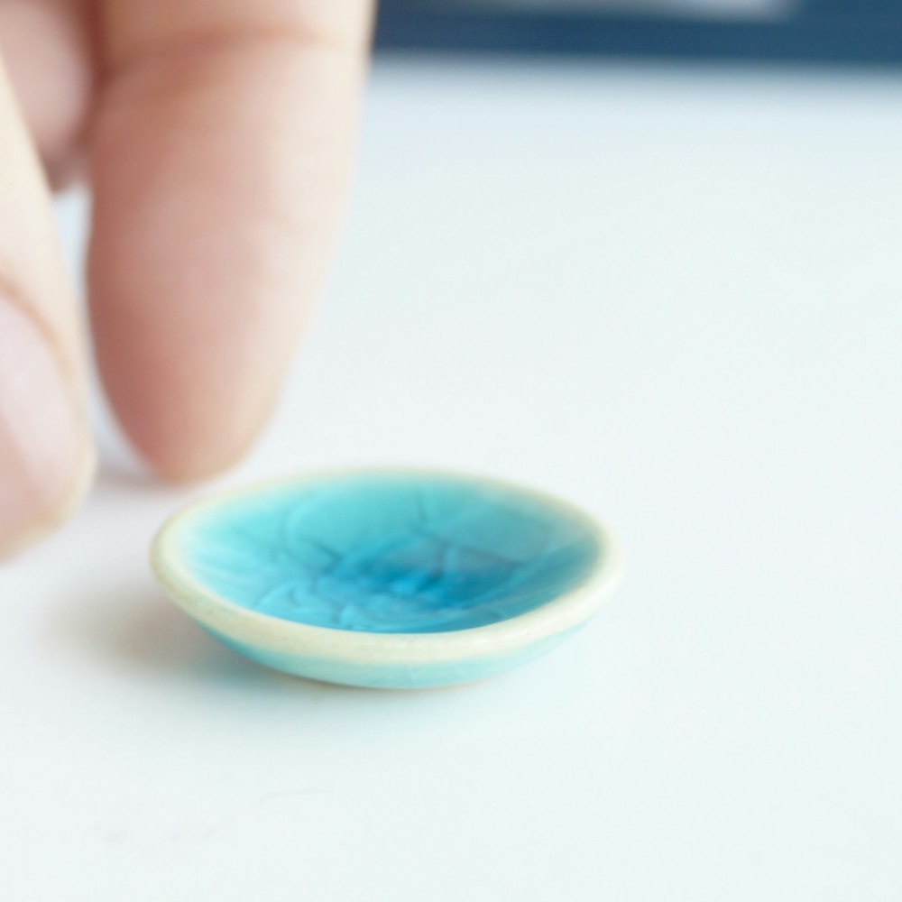 ブルーガラス陶皿(ミニチュア陶芸食器)