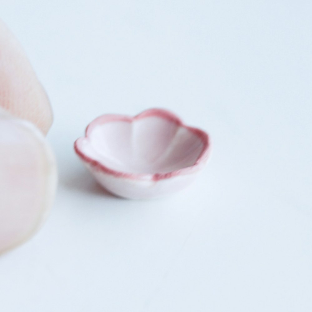 定食・食卓ピンク花小鉢(ミニチュア陶芸食器)