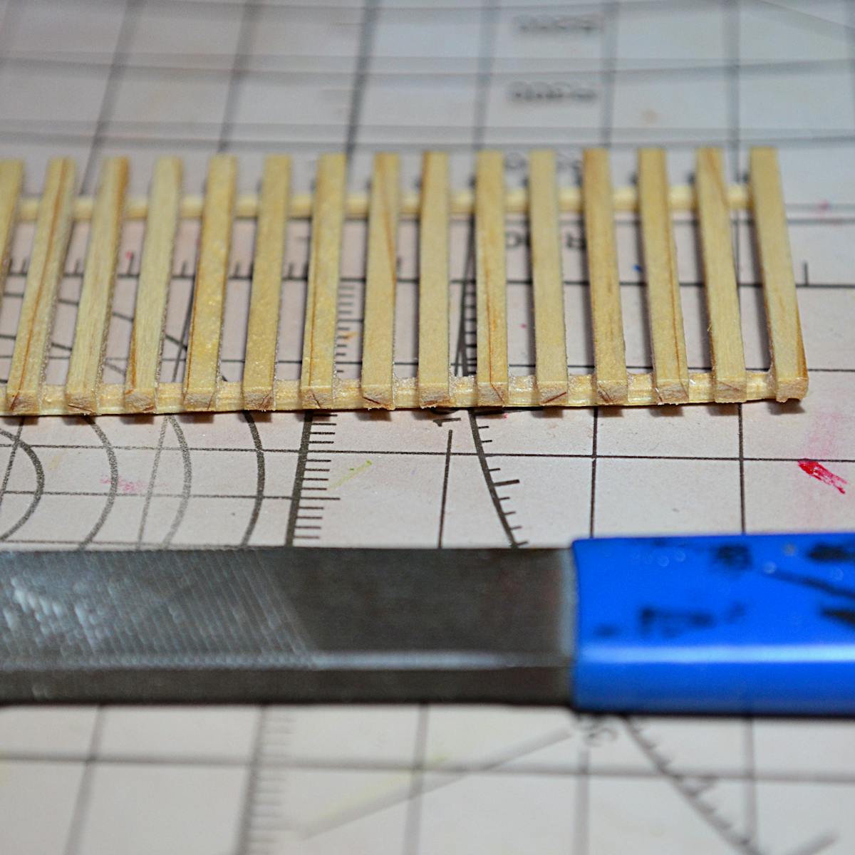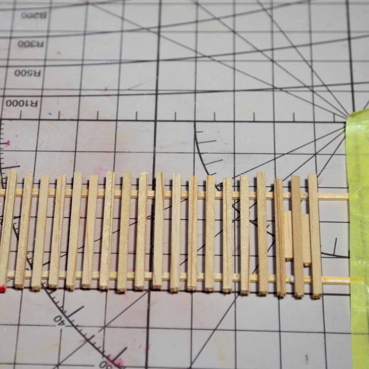 1mm厚の木材の上に、2mm角の木材を3cm+αで切り出したものを並べていきます。