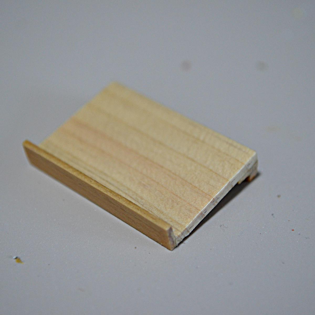 今まで作ったものをかまぼこ板の上にのせて、後ろに棚を作ってみました。