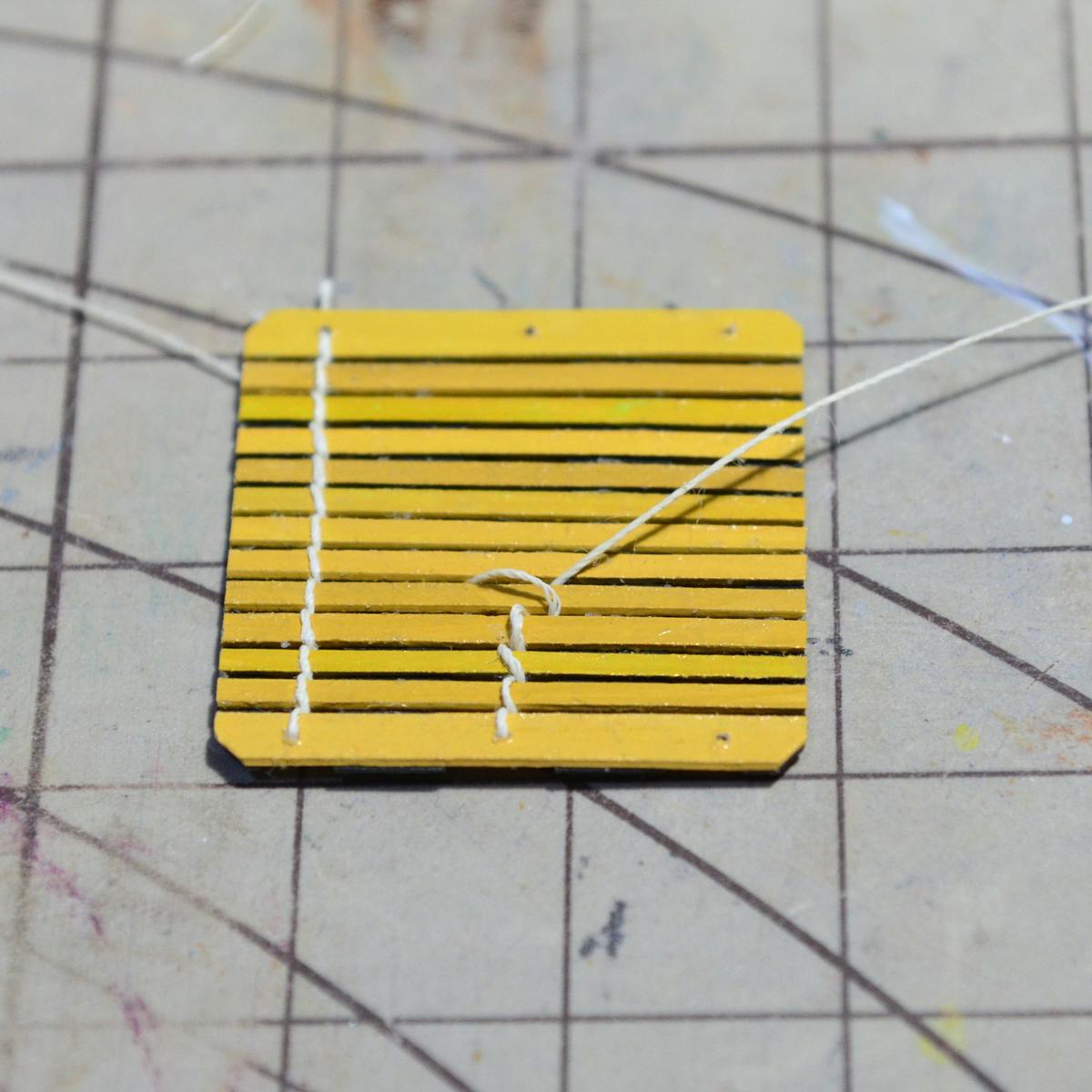今回は、その竹板に糸を通していきます。