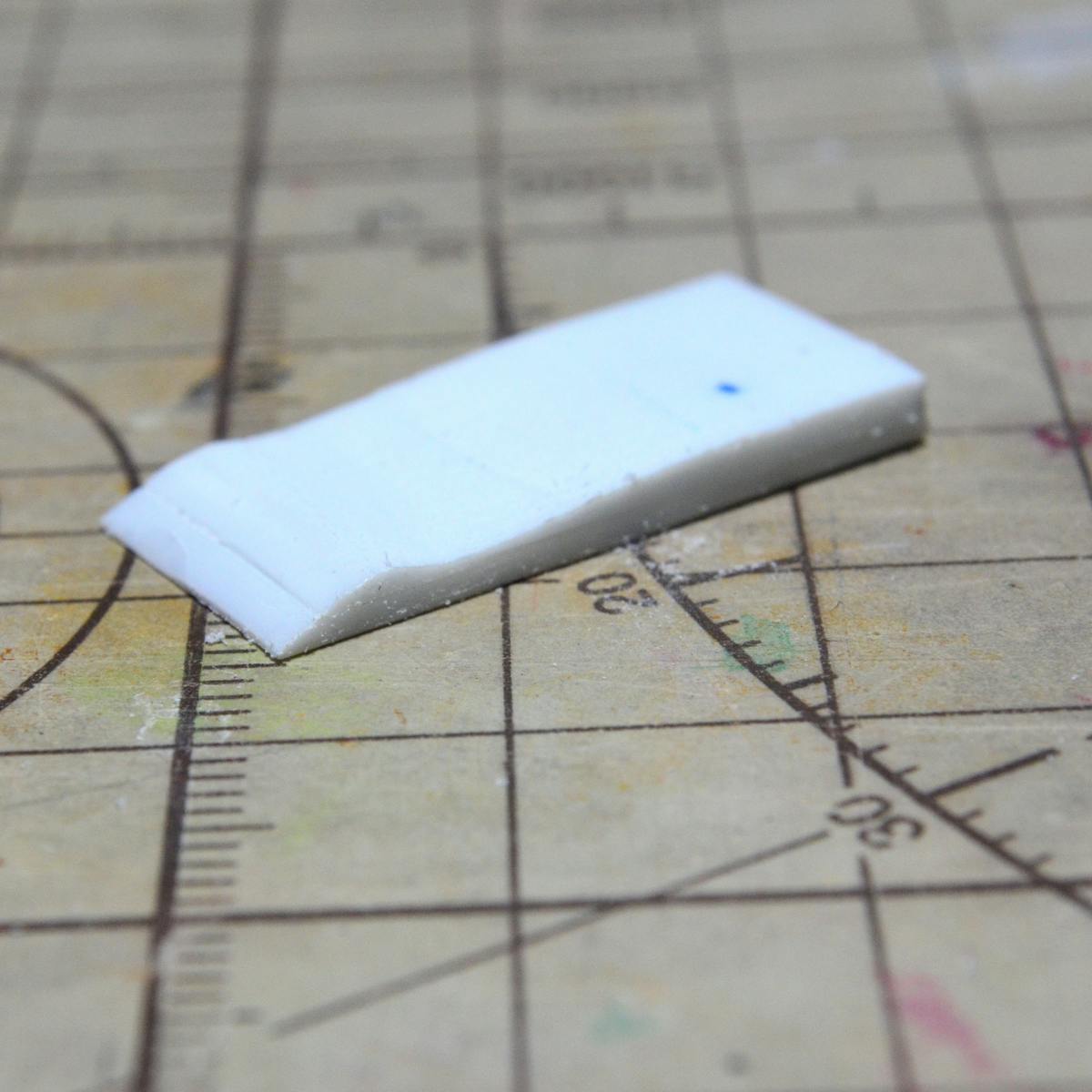 この後、ブルーミックスで型取りするので、下に0.5mmのプラ板を追加しています。(写真の白い部分)