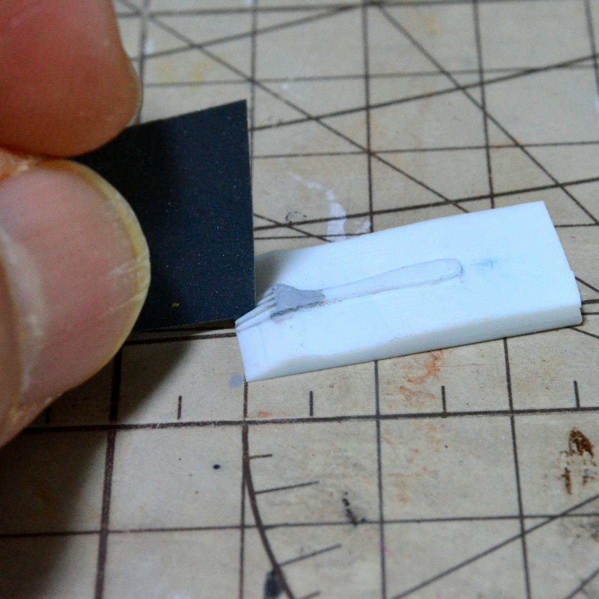爪の隙間は、紙やすりを差し込んで成形していきます。