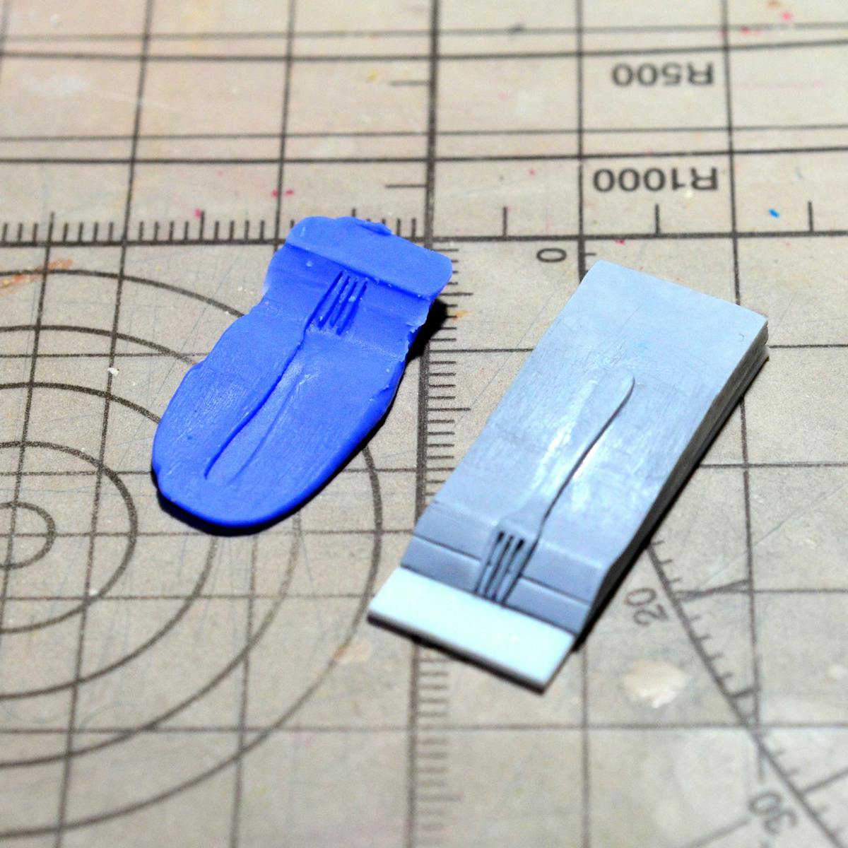 フォークは先端の爪の部分が細すぎて原型だけを奇麗に作るというのは不可能なので、台と一体のものを原型にすることにしました。