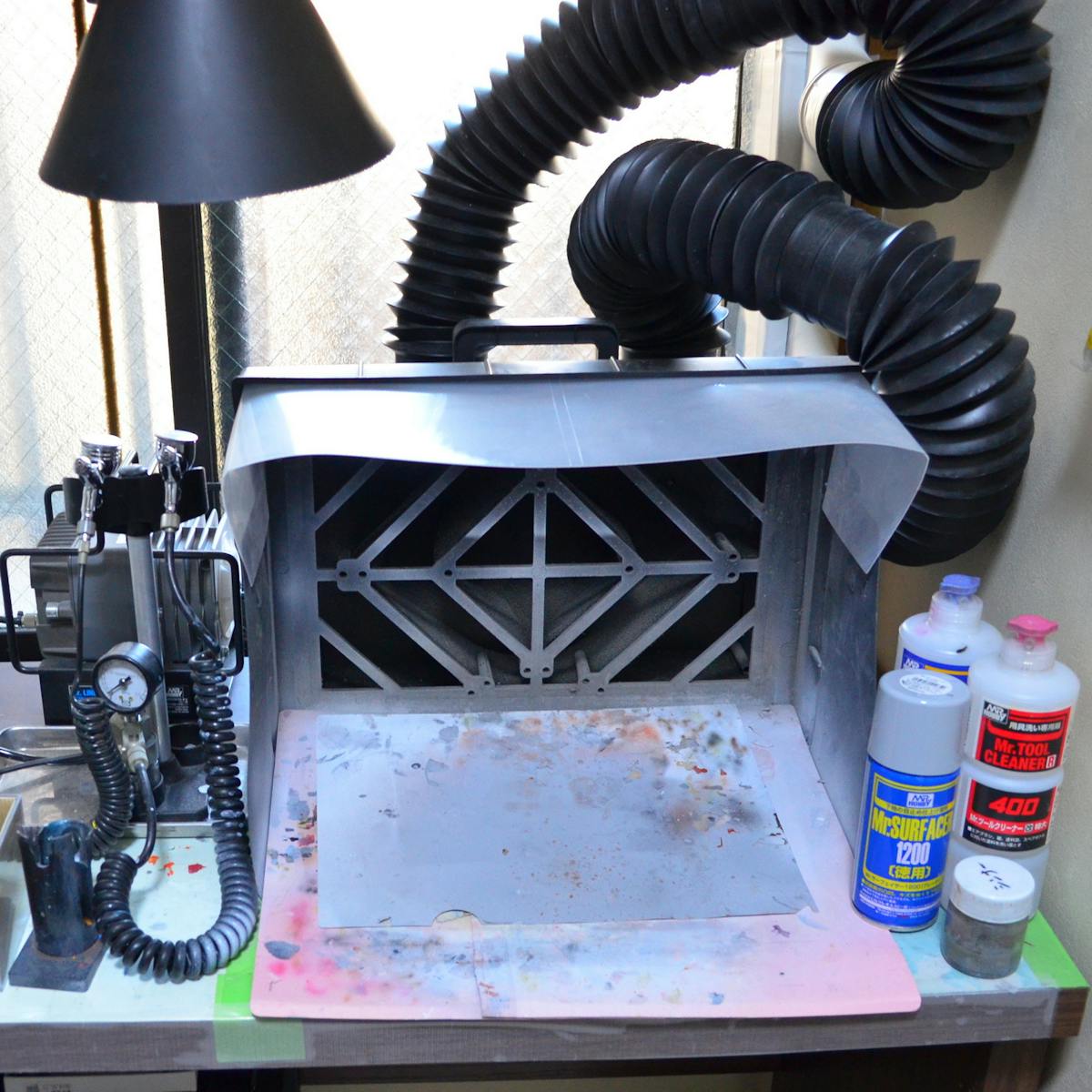 結構強力に排気してくれるのと、吹き返し(エアスプレーで吹いた空気が向こう側にあたって戻ってくること)が少ないので、非常に使いやすいです。