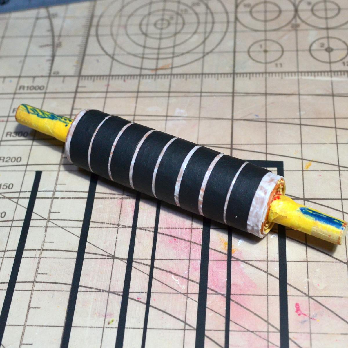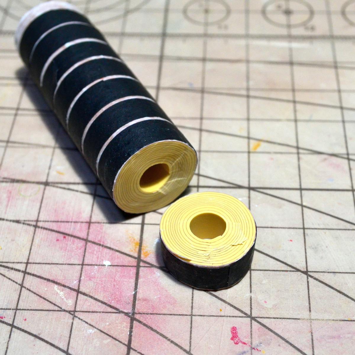 マスキングテープが心棒と垂直に、きれいに巻き付きました。