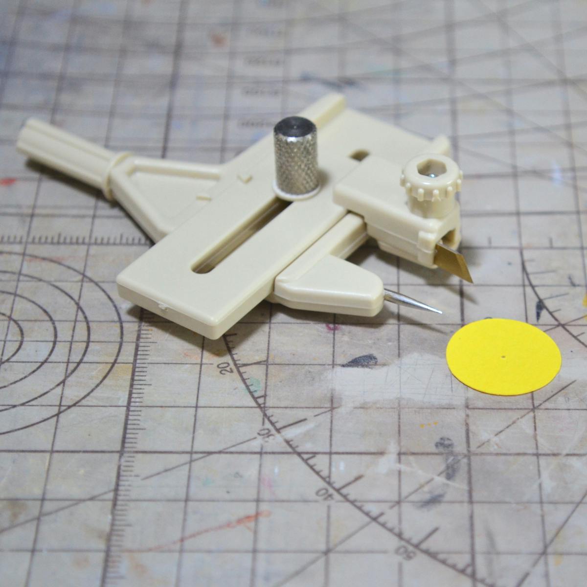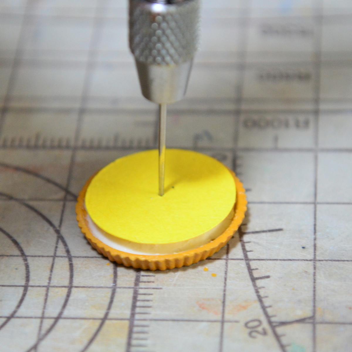 タルト台のセンターを出すために、サークルカッターを使って、紙からタルト台の内側(今回は19mm)の直径の円を切り出します。