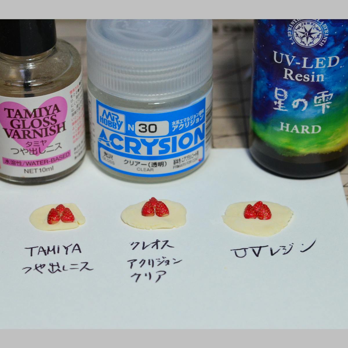 実験に使ったのは、透明の皮膜を作ることができる代表的な3商品で試してみました。