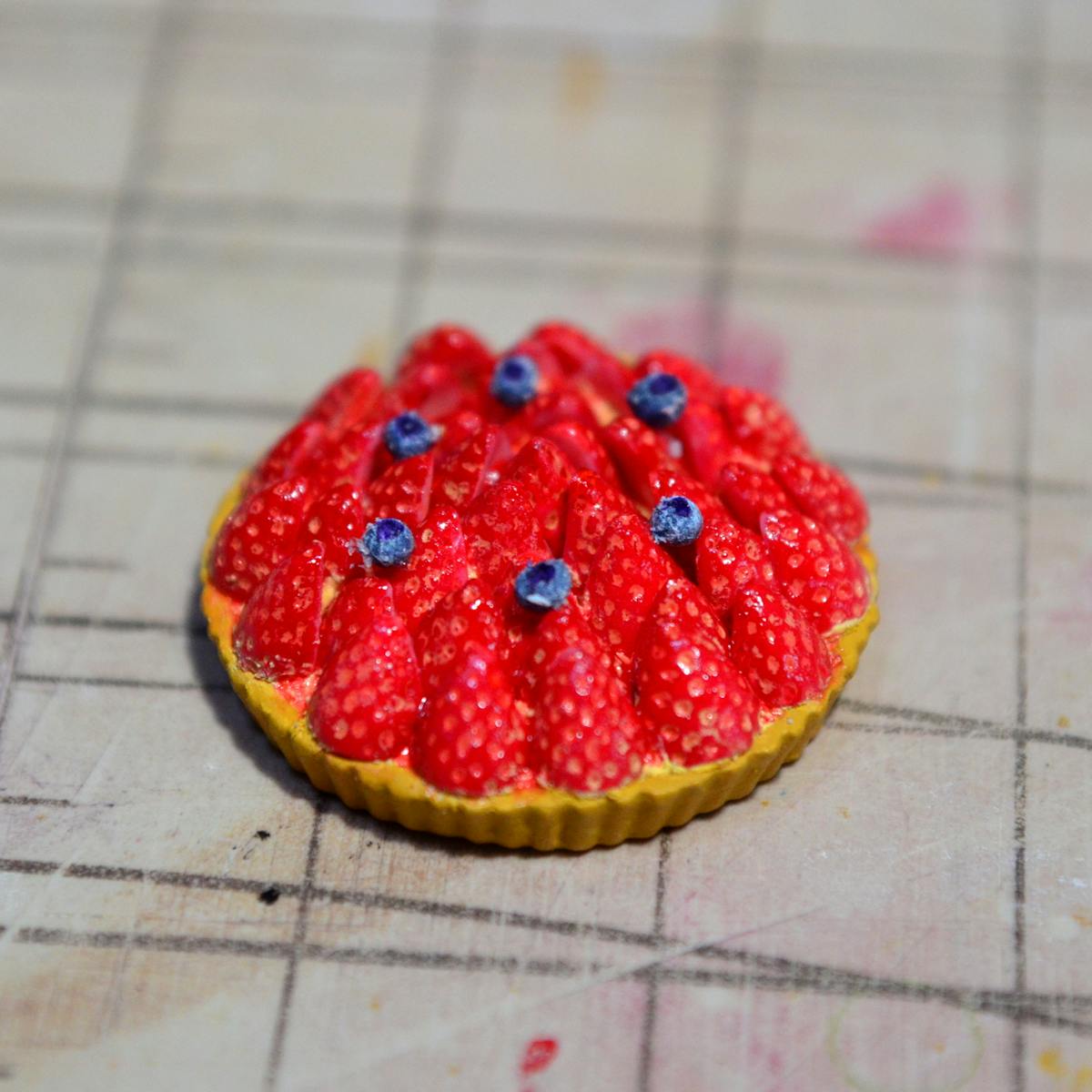 イチゴとイチゴの隙間の部分、塗った瞬間は良かったのですが、乾燥したら小さな気泡ができてしまいました。