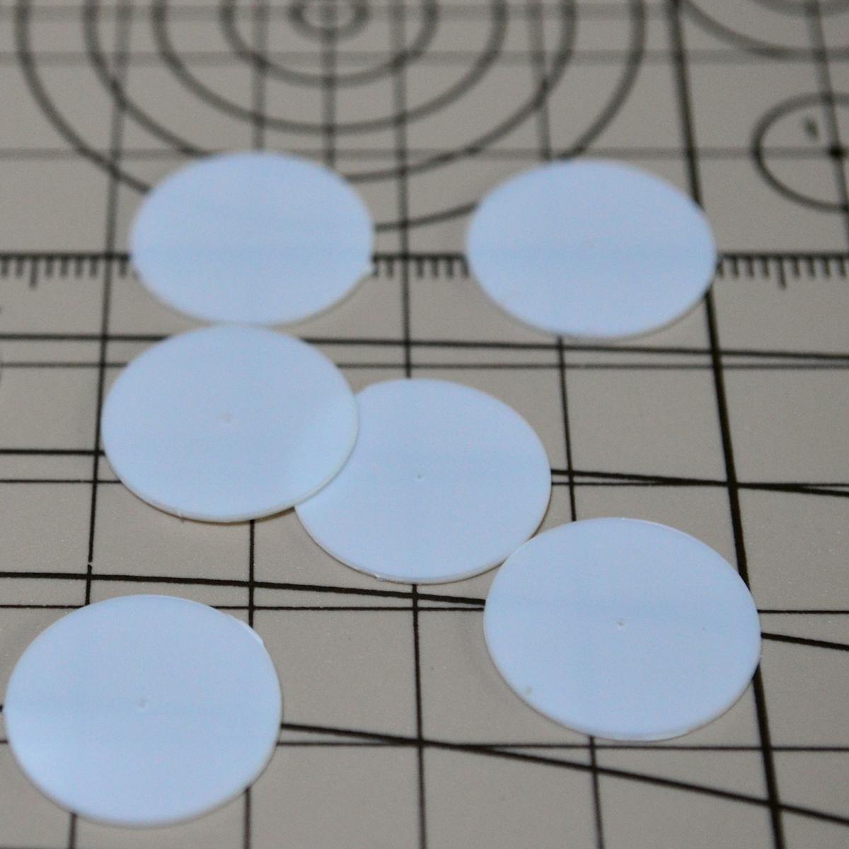 - まずは、スポンジ/クリーム部分の型の元になるプラ板の円板を切り出します。