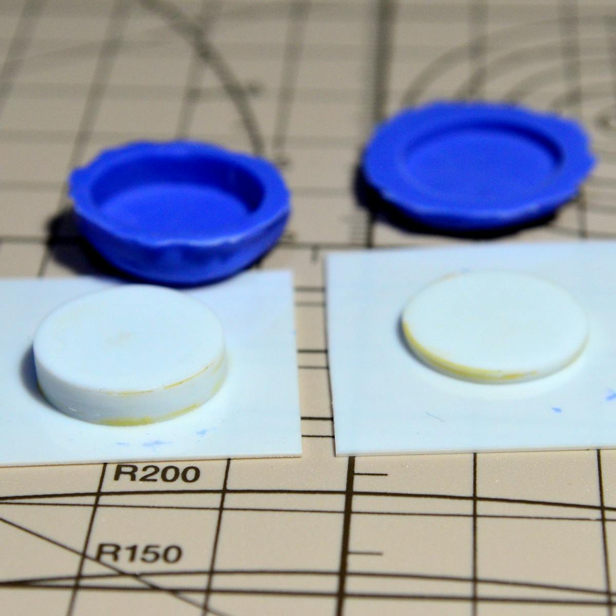 - プラ板の円板を重ねて、ブルーミックス型を作ります。