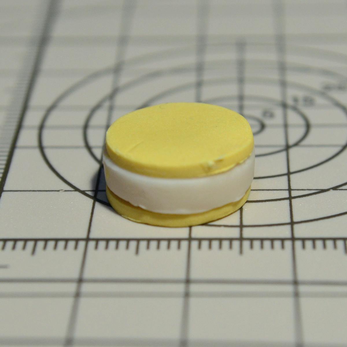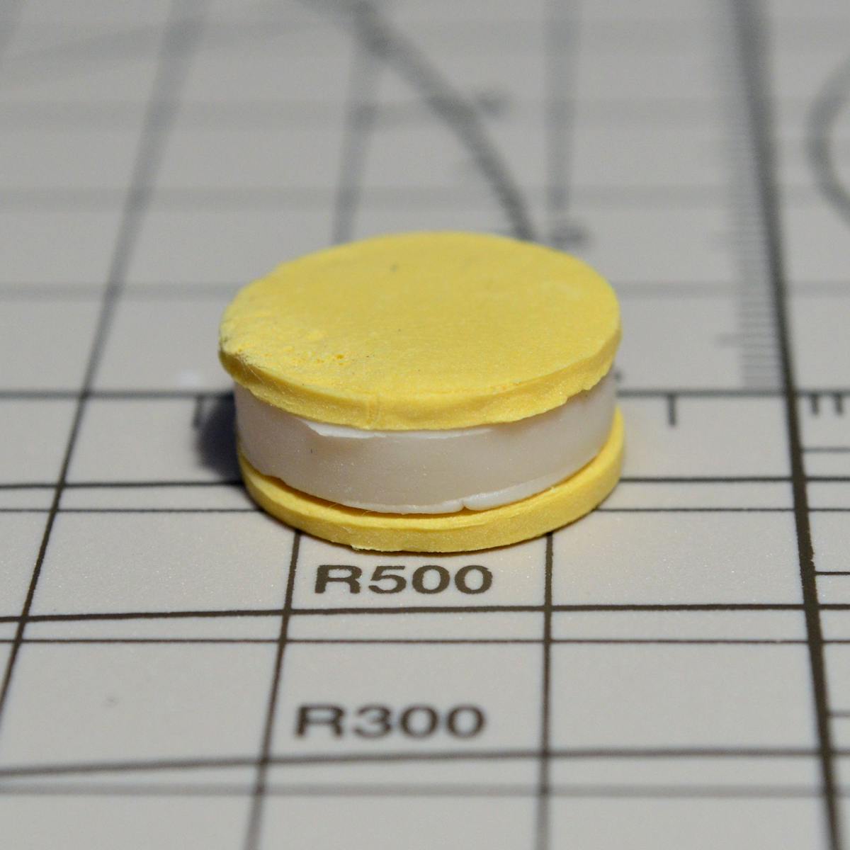 クリーム部分と同様、240番の紙やすりで上下面を平らにした後、オリジナル絵具の「ふんわり焼き色」で焼き目を付けてみました。