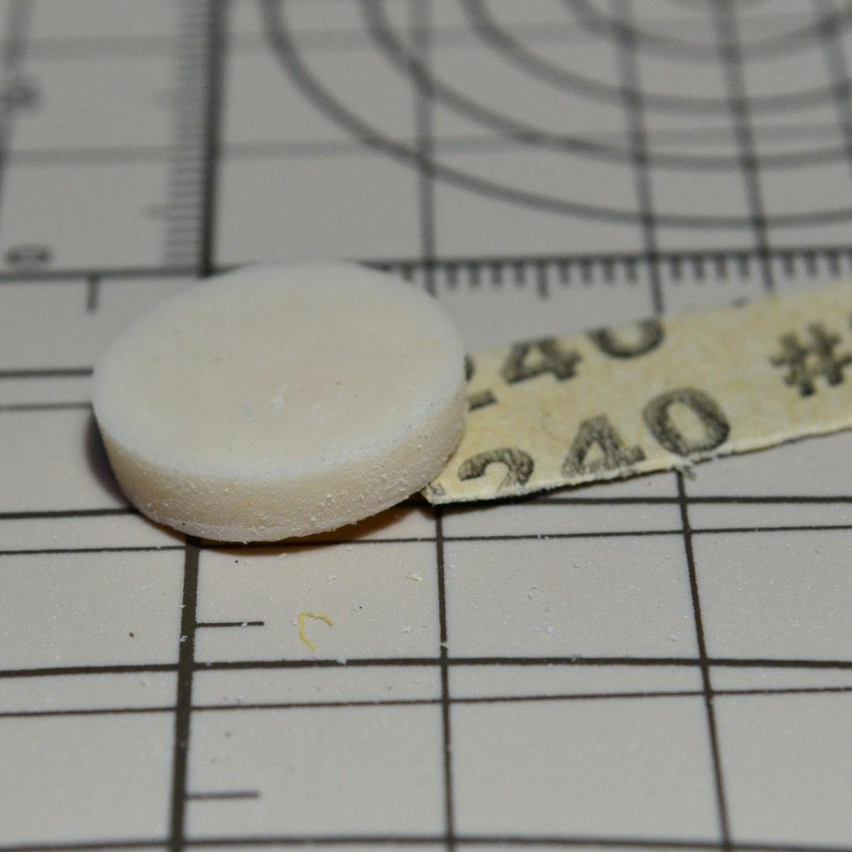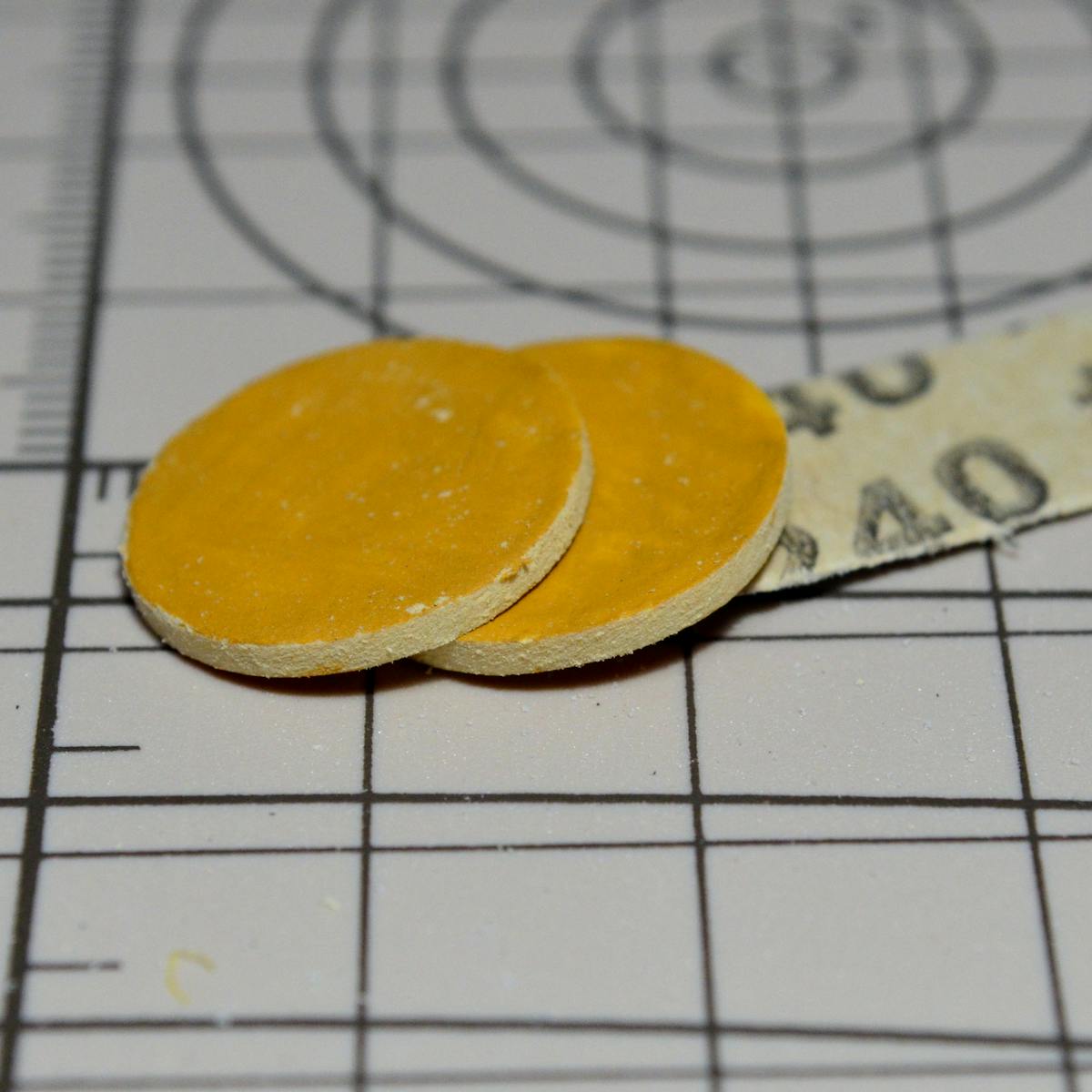 モデナは240番位の粗い紙やすりだと削れるので、これで上下面を平らにするとともに、周りをきれいな曲面にしておきます。