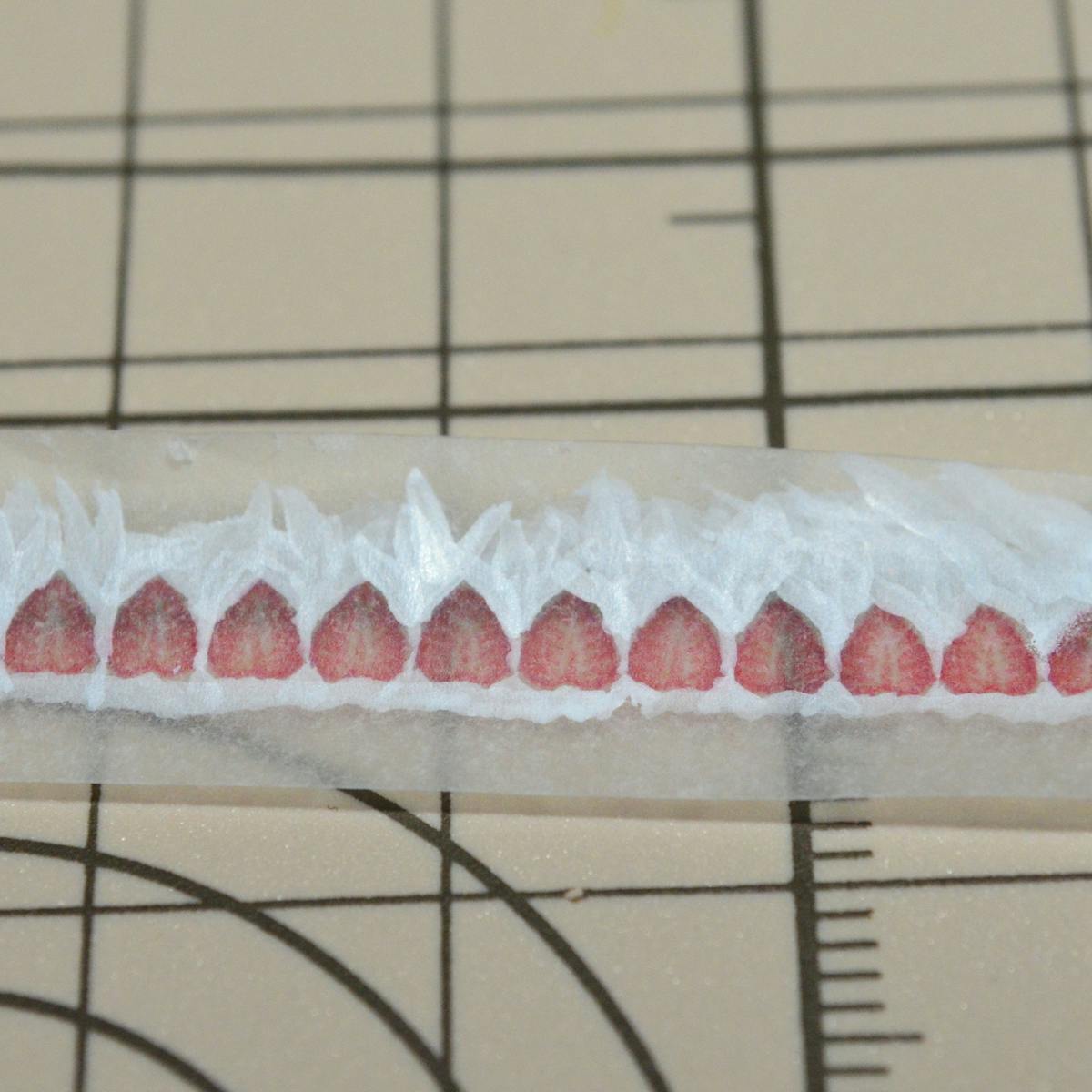 これをクリーム部分に接着すると、イチゴの断面らしく見えるはずです。