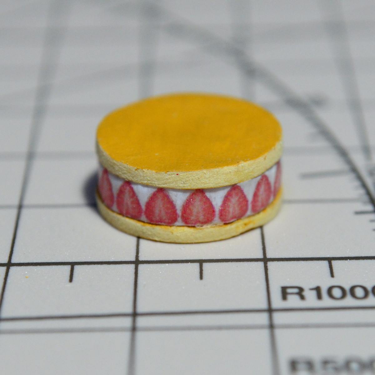 スポンジを薄く焼いたと想定して上下面に焼き目を付けたのですが、実際にクリーム部分と合わせると境界部分がはっきりしすぎました。