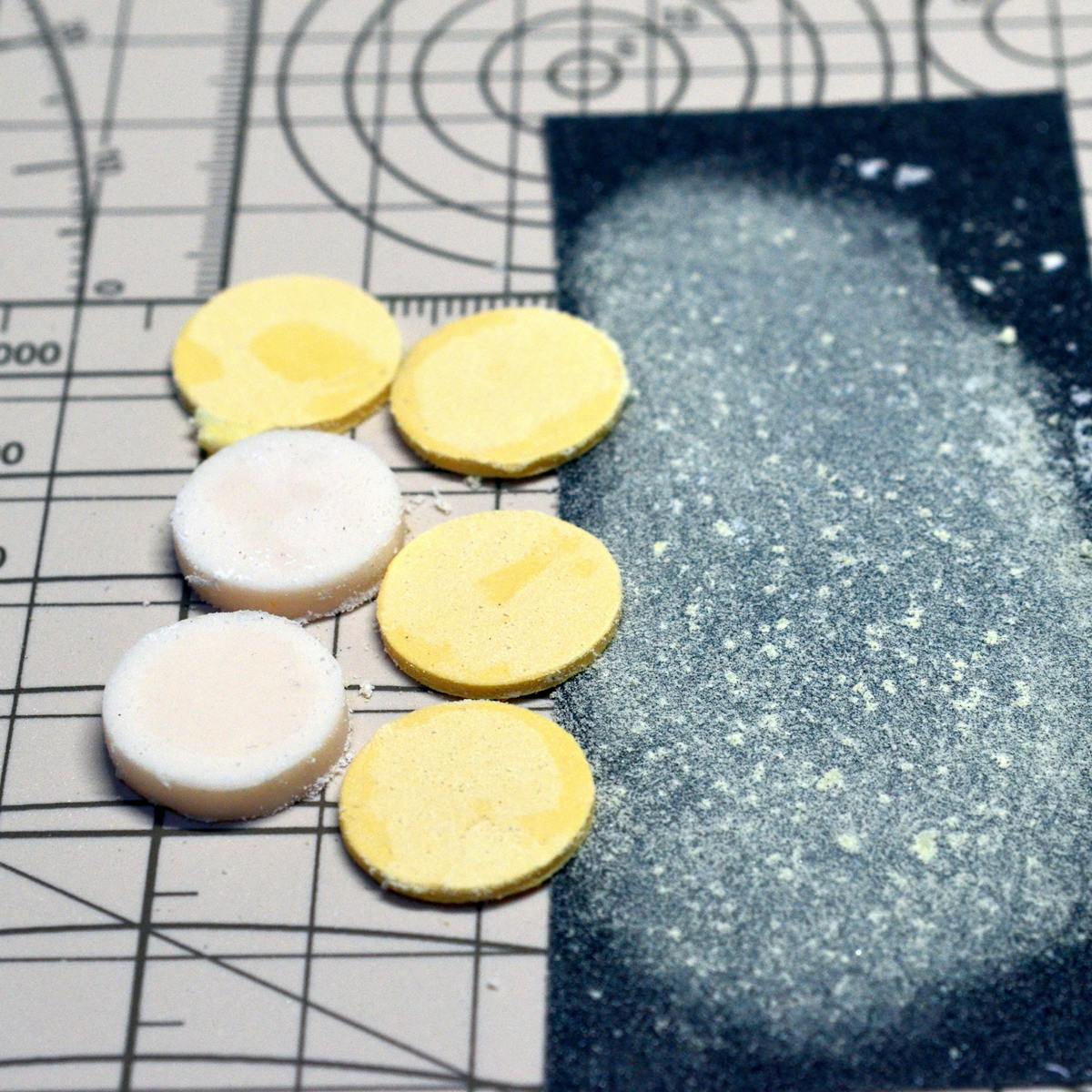 - スポンジとクリームの上下面を紙やすり(240番あたり)で平らにしておきます。