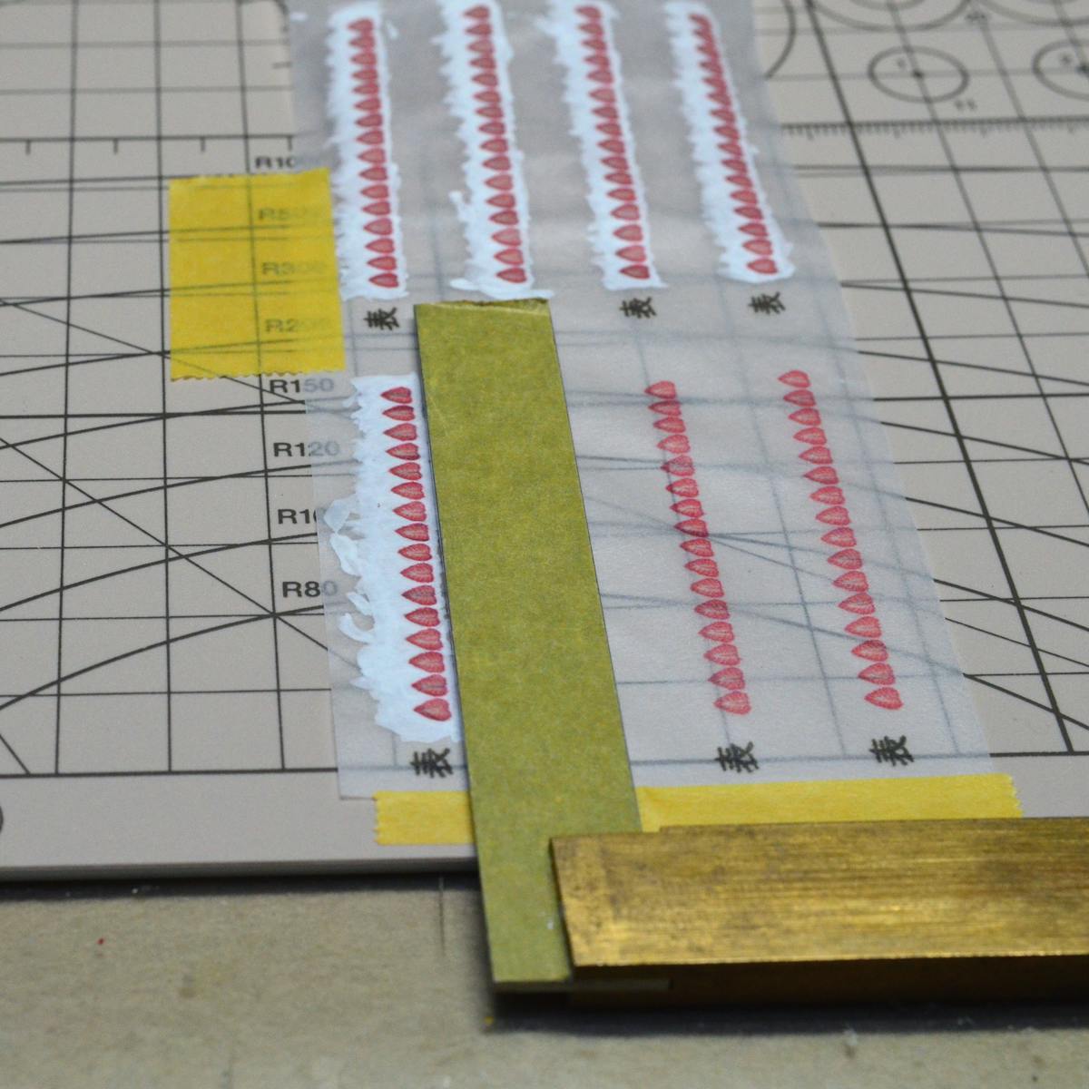 これは、接着する時トレーシングペーパーが少し伸びるからなのですが、その伸び方を調整しながら貼り付けていかなければいけません。