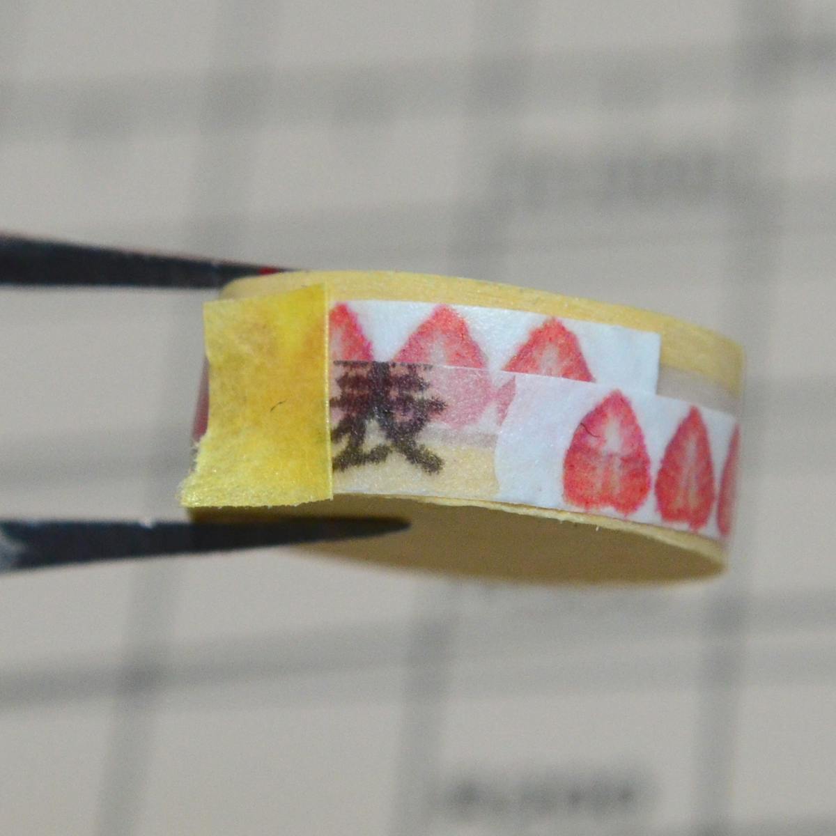 この状態で、トレーシングペーパーがイチゴ半分位伸びて、ちょうどいい長さになったのが判ると思います。