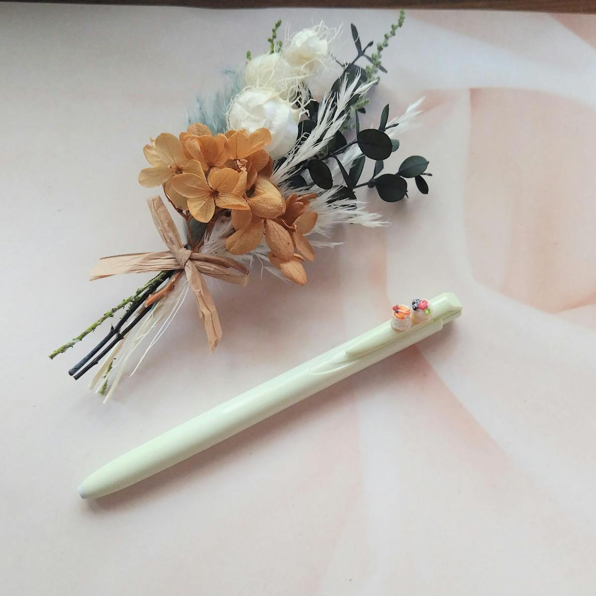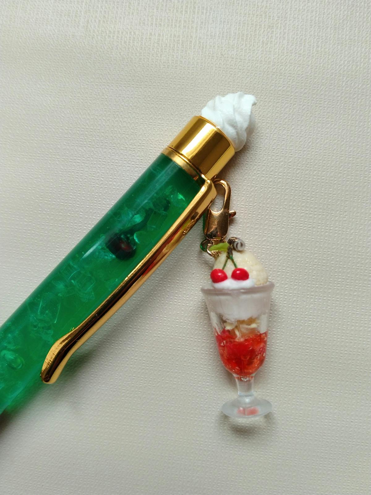 《グリーン》5種類のパンボールペン(いちごクロワッサン)