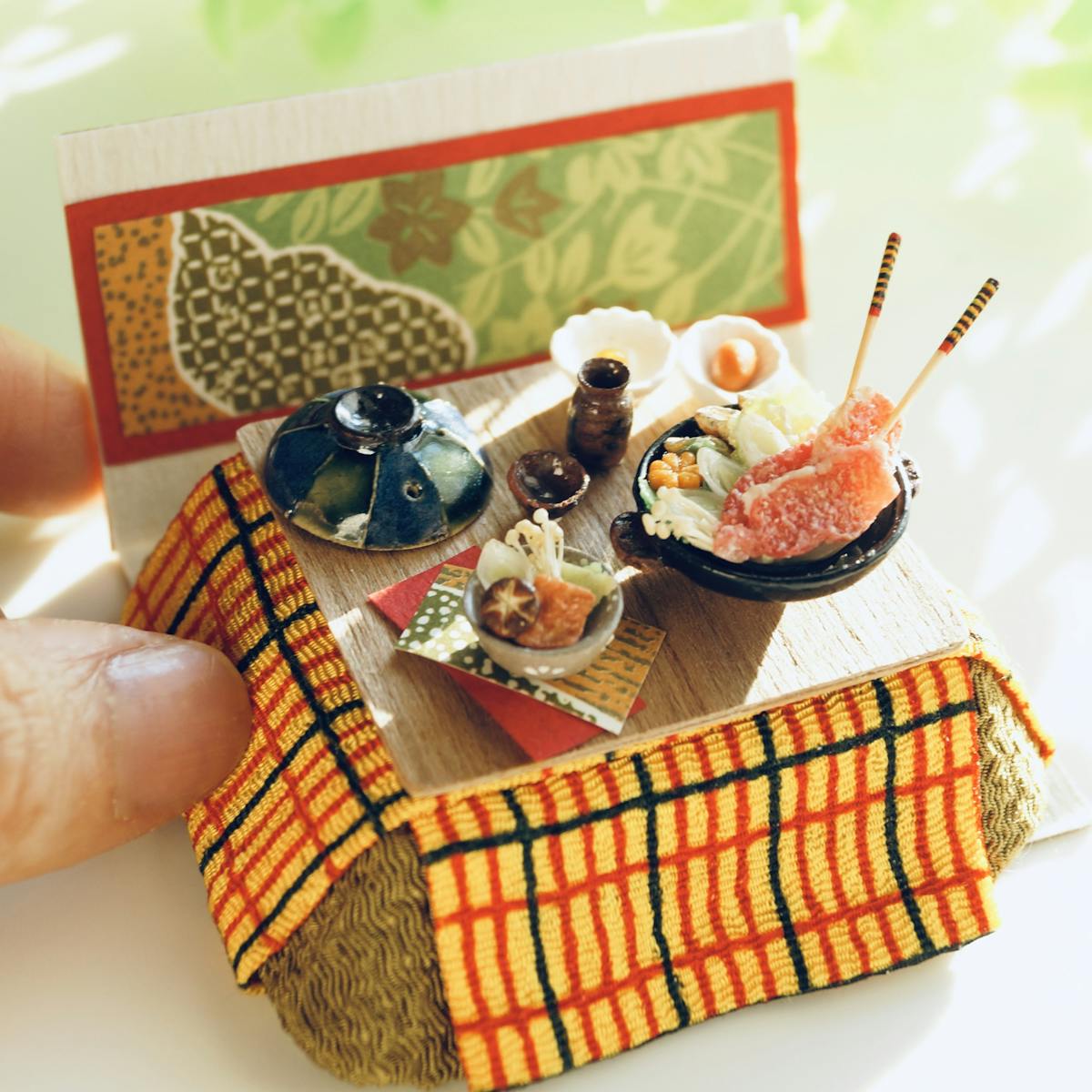 コタツでお鍋(ミニチュア陶芸食器/置物)