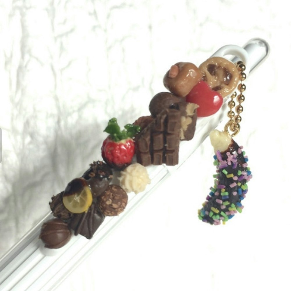 樹脂粘土で作成した高級チョコレートや手頃なチョコレート菓子を15種盛り付けました。