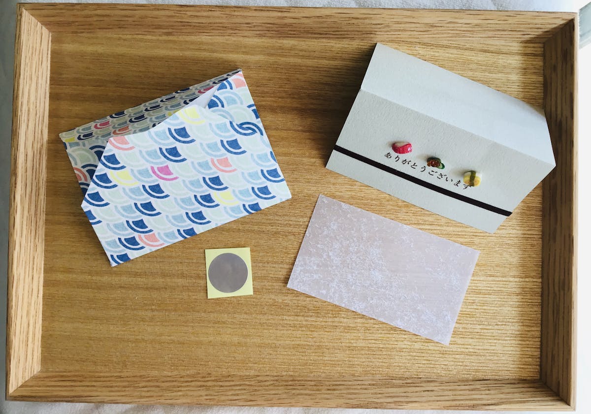 封筒は一点物のため写真のものにはなりません。柄や色合いはお任せください。寒色系・暖色系の選択は可能ですので、必要な場合にはオプションにてお知らせください。