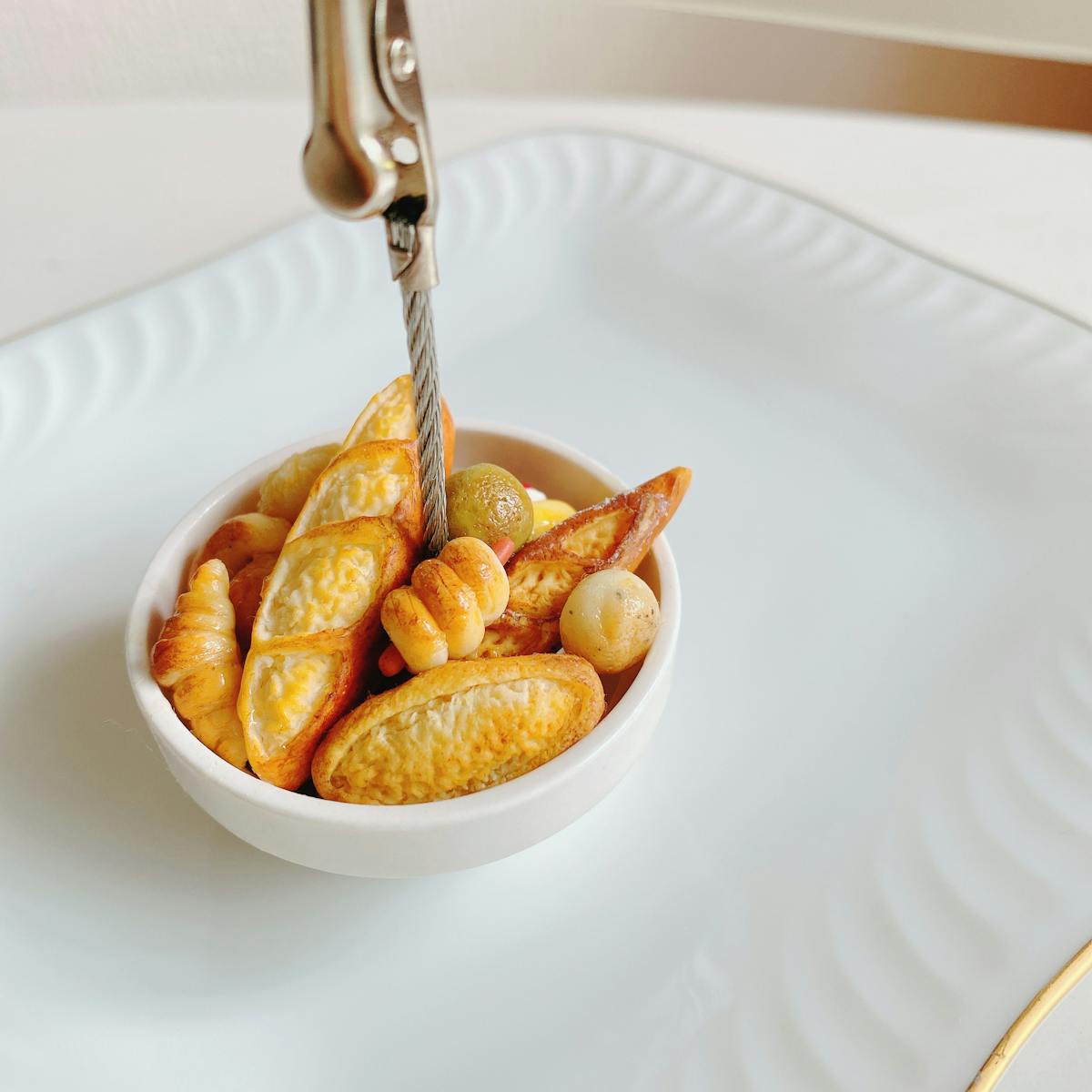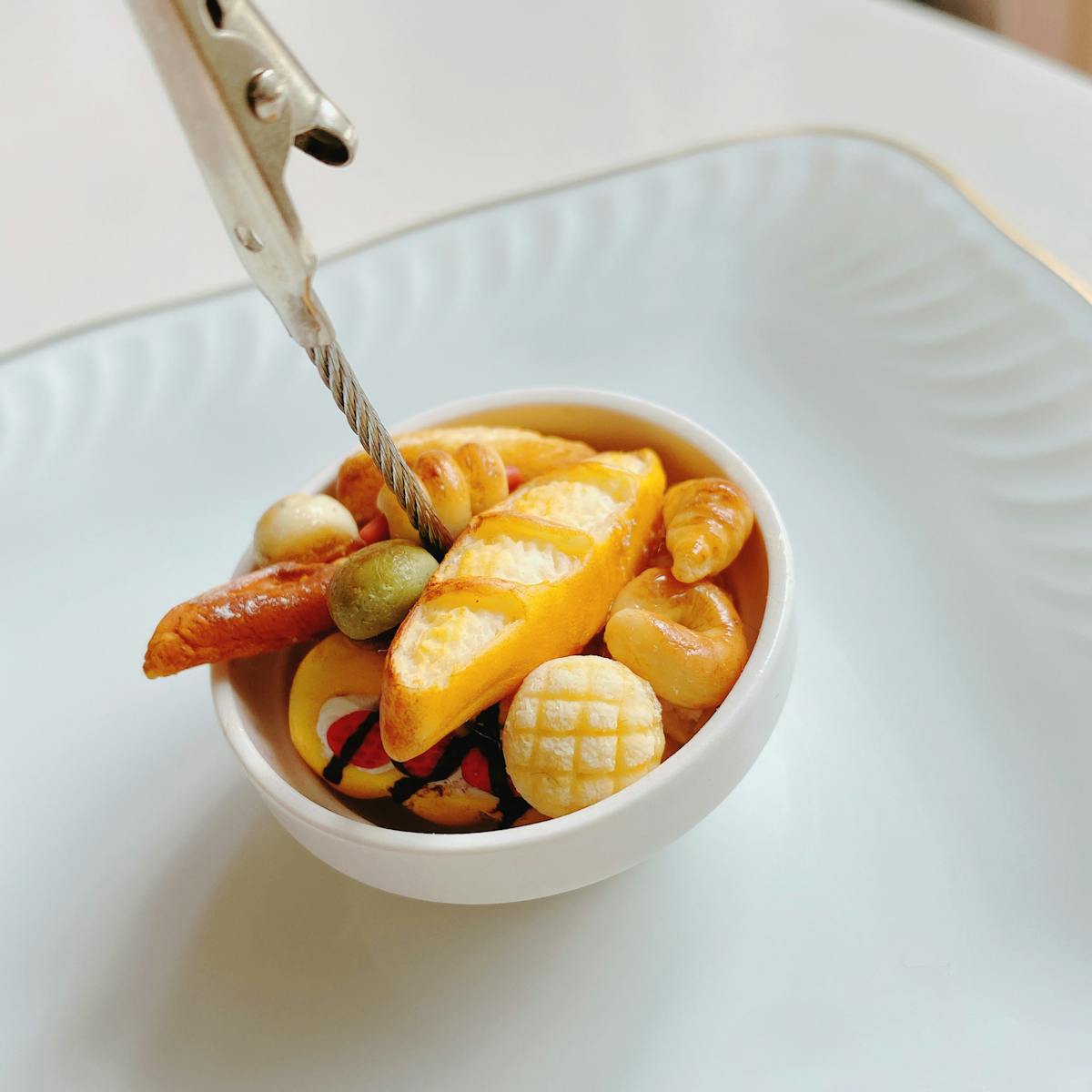 樹脂粘土で作ったパンをたくさん入れたカードスタンドです。