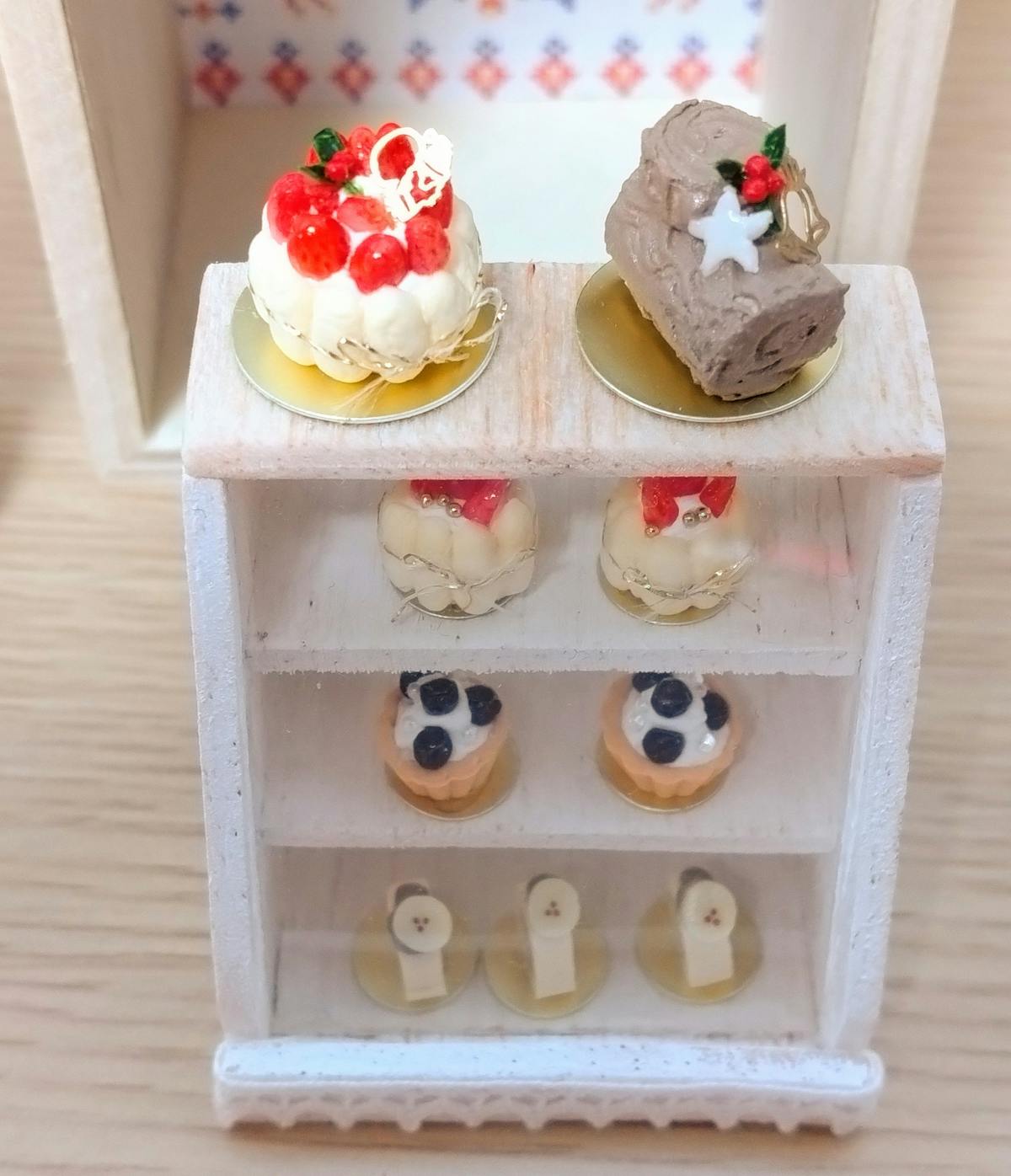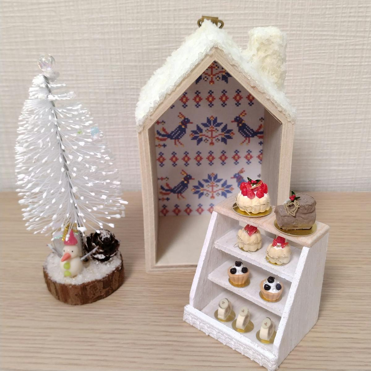 ホワイトクリスマスをイメージして、小さなケーキ屋さんを作りました♡