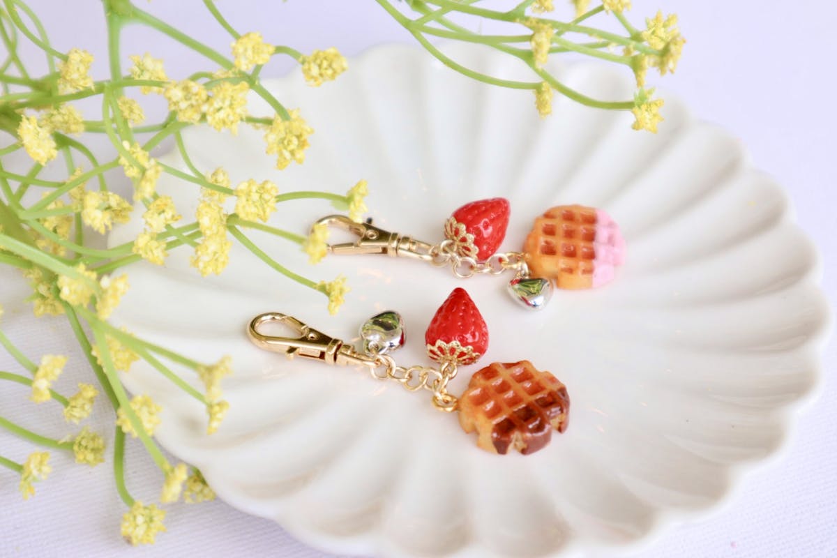 チョコワッフルと、いちごチョコのワッフルのキーホルダー2つセットです♪