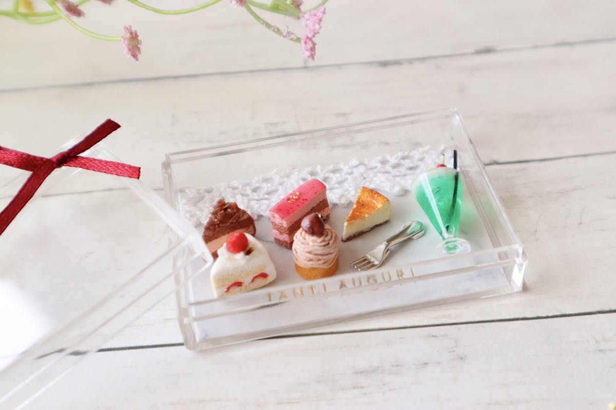 の5種のケーキと、メロンフロート、フォークのセットです♡