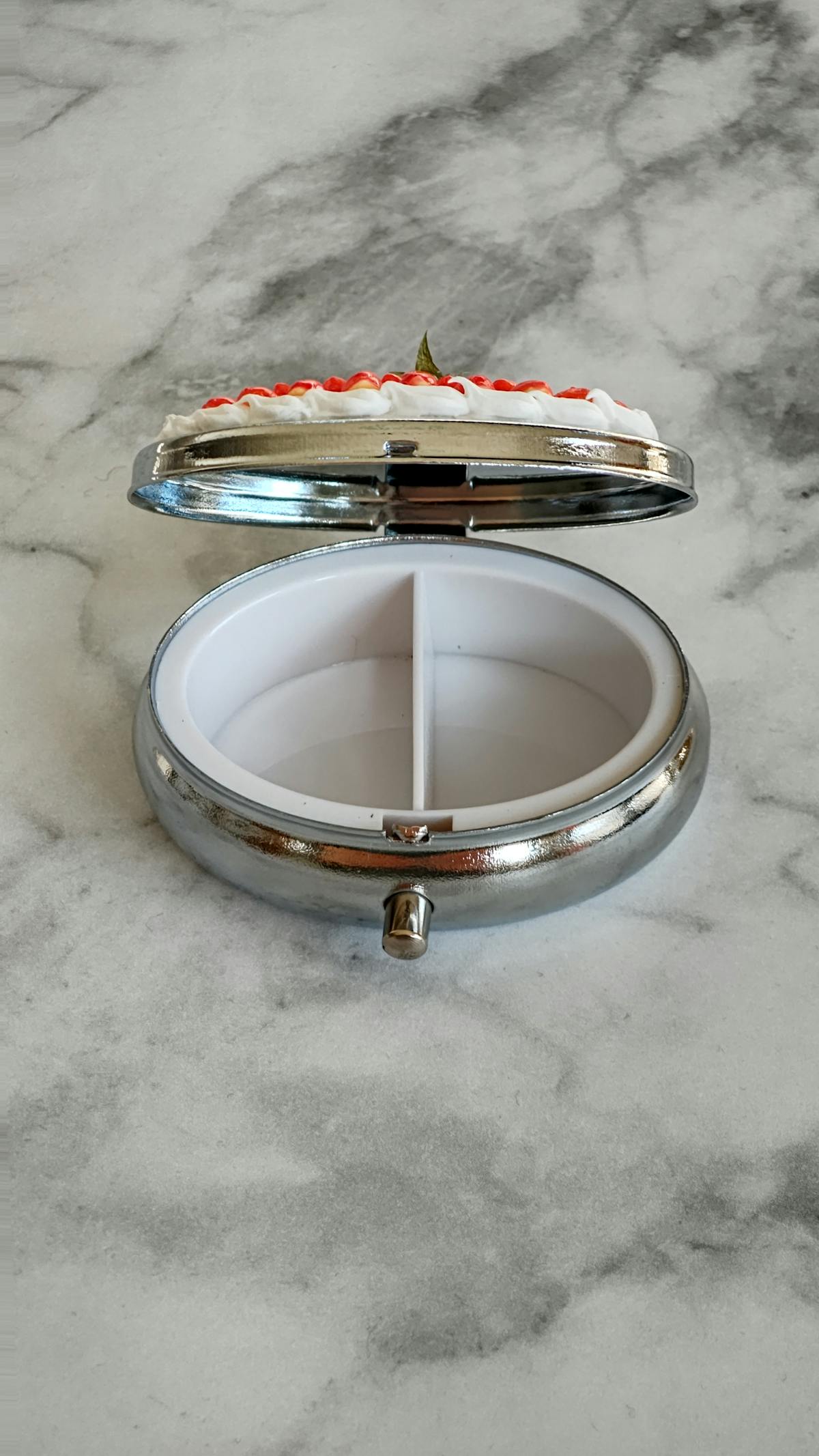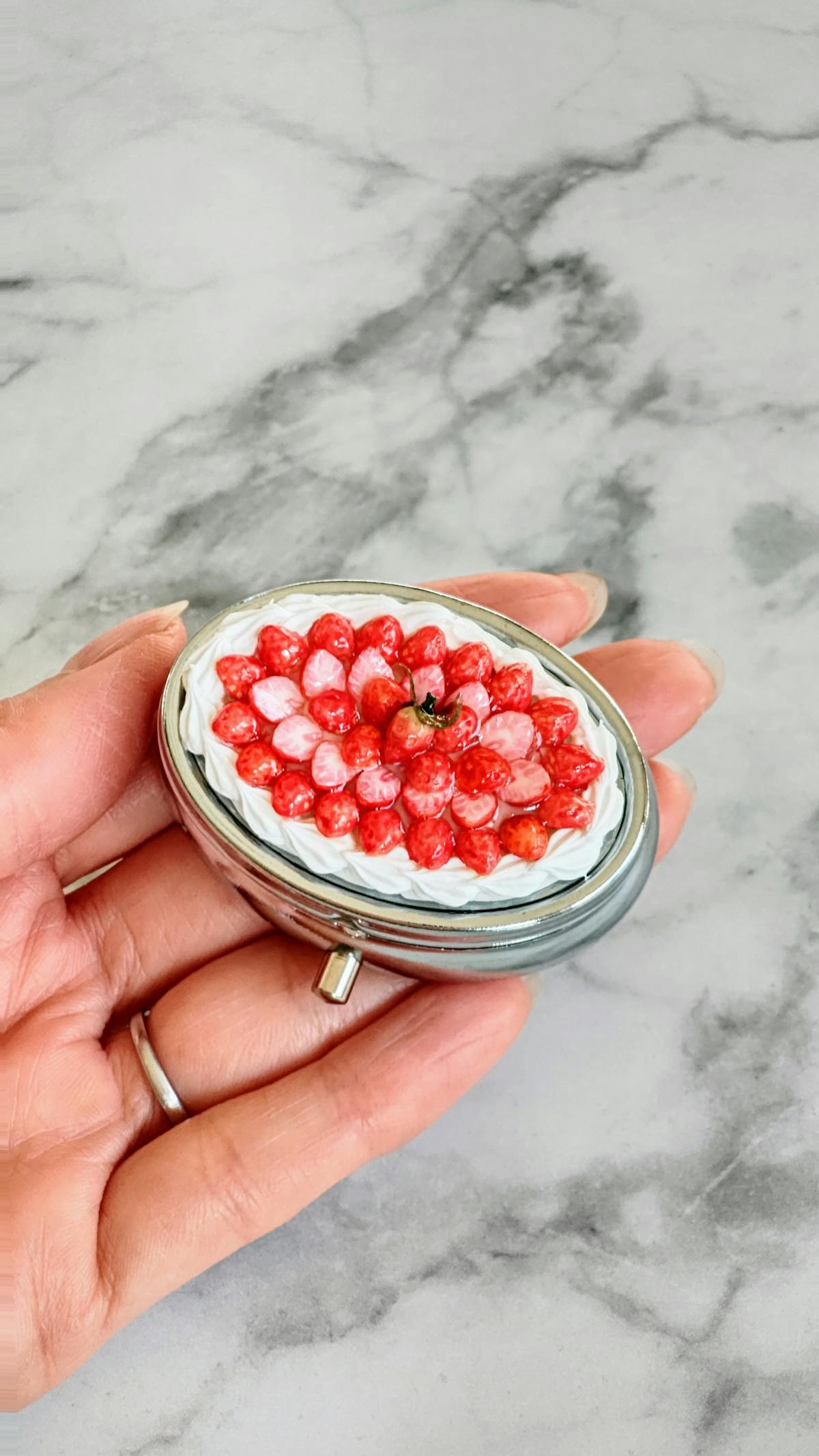イチゴたっぷりのケーキをイメージした小物入れです。