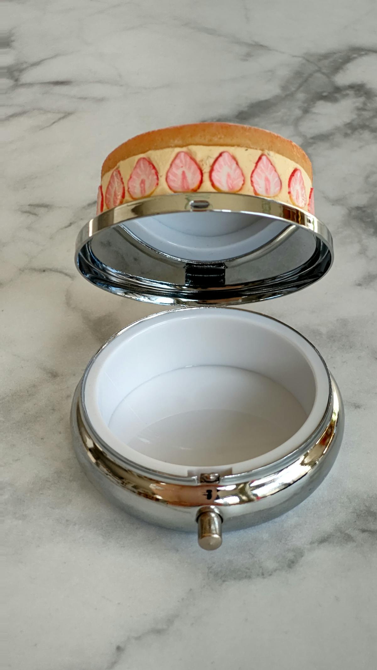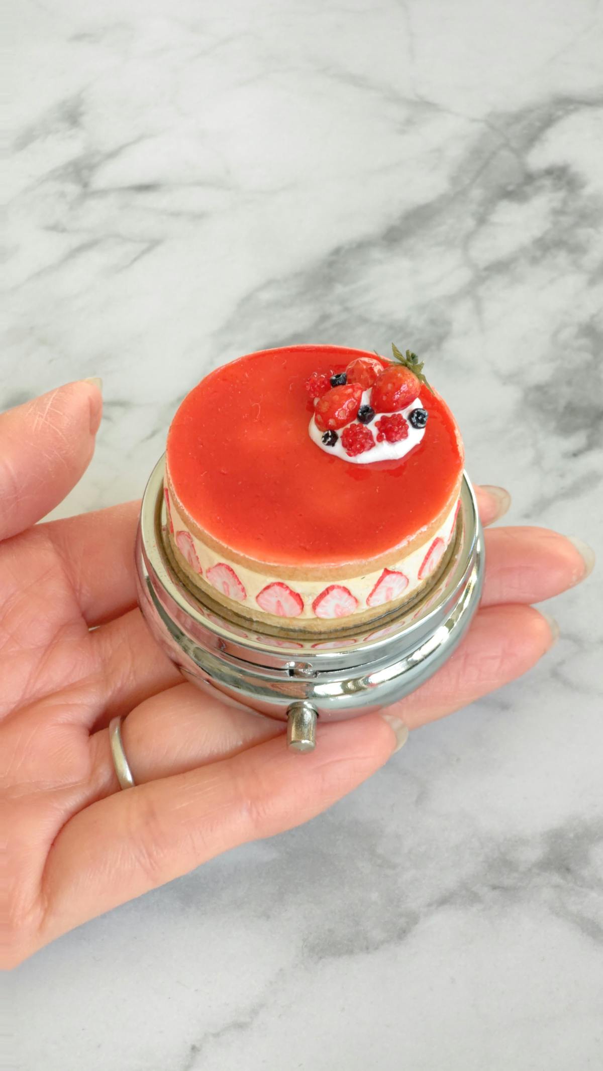 イチゴの断面がかわいいフレジエをイメージした小物入れです。