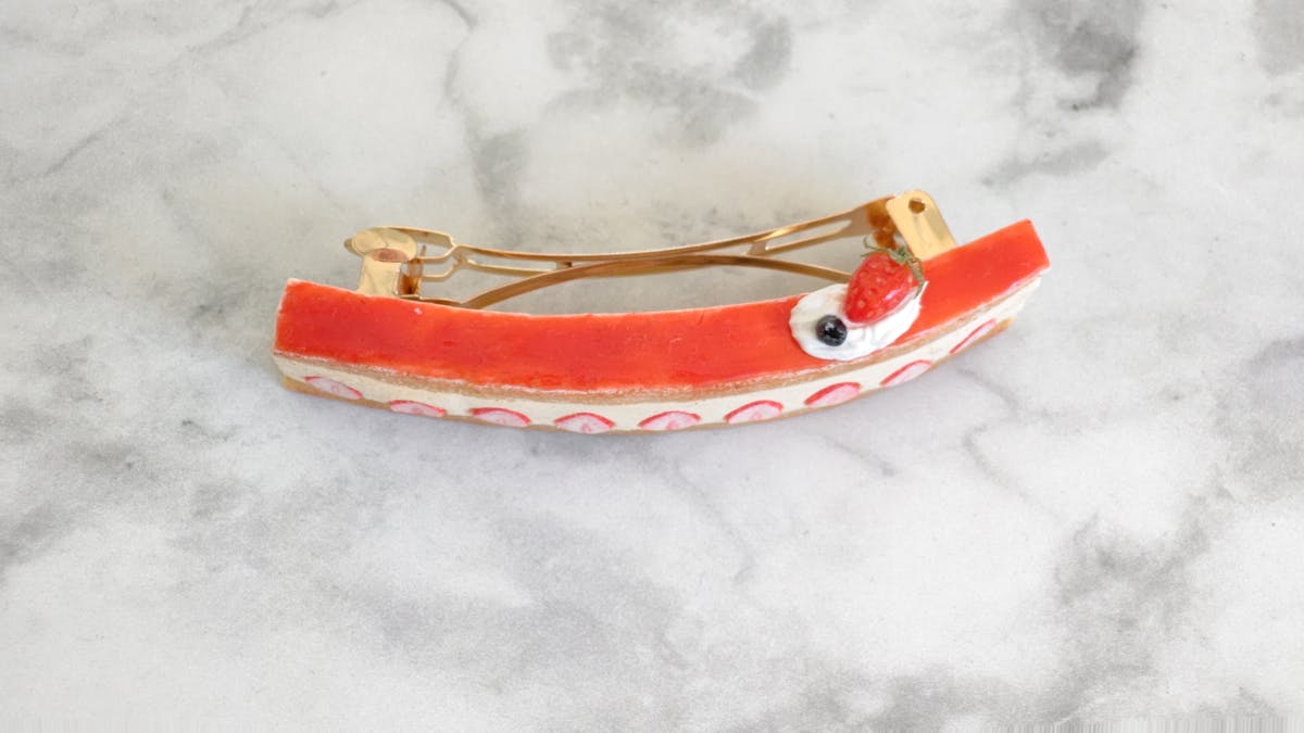 イチゴの断面がかわいいフレジエをイメージしたバレッタです。
