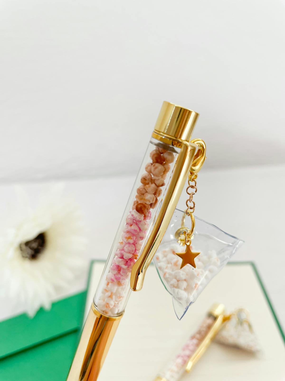 テトラパック入りのポップコーンがゆらゆら揺れて楽しいボールペンです。